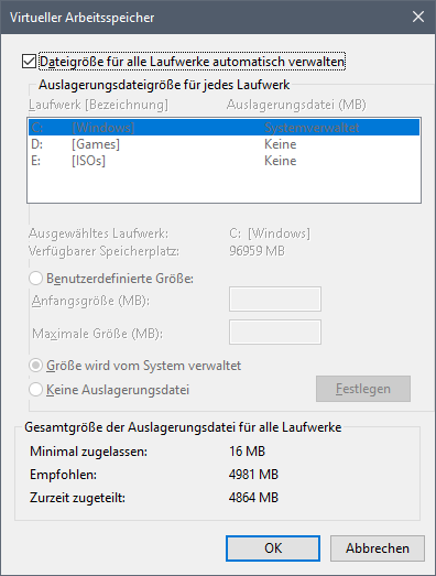 Ich sehe zwar, dass die pagefile.sys größer wird usw., aber es crasht dann.