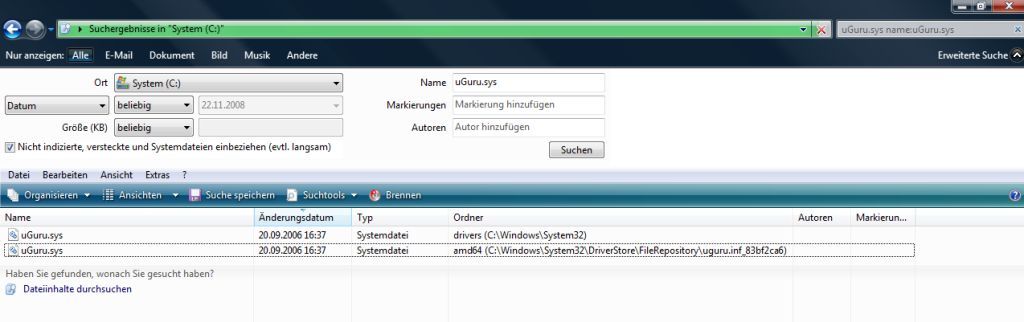 Ich habe Windows mal nach uGuru.sys suchen lassen und 2 Dateien gefunden (siehe Anhang), obwohl ich ja eigentlich deinstalliert habe.
