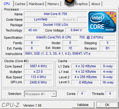 CPU: intel i5 750 (2,66GHz)
