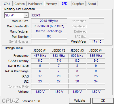 RAM: 2x2GB Micron PC3-10700 (667MHz) DDR3