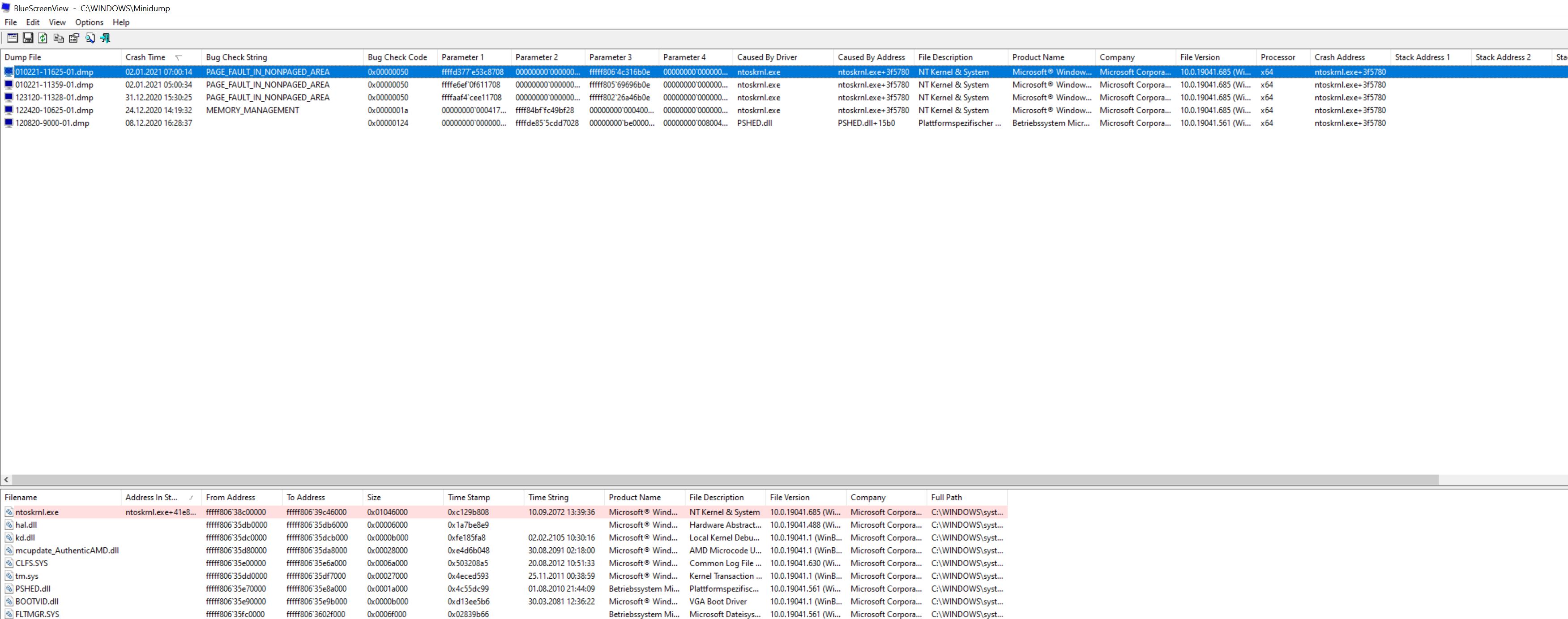 Die Dumps die erzeugt wurden habe ich hier abgelegt, vielleicht kann mir jemand bei der Eingrenzung helfen und dafür möchte ich mich bereits jetzt bedanken: