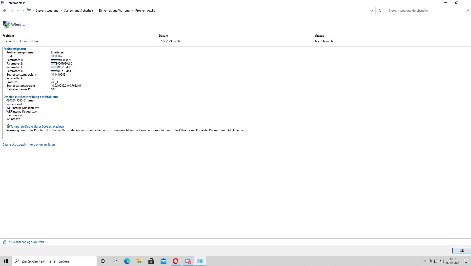 Folgende Fehler kommen immer in der gleichen Reihenfolge, dann schmiert der Rechner ab:
