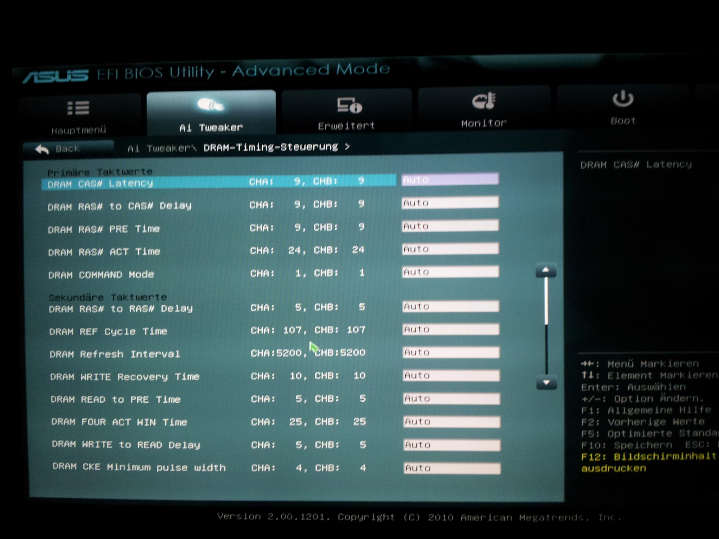 Wie ist die RAM Spannung eingestellt? Steht die auch auf AUTO? Wenn ja, stelle die manuell fest auf 1,5 - max 1,55V ein (teste mit variablen Spannungen in dem genannten Bereich).