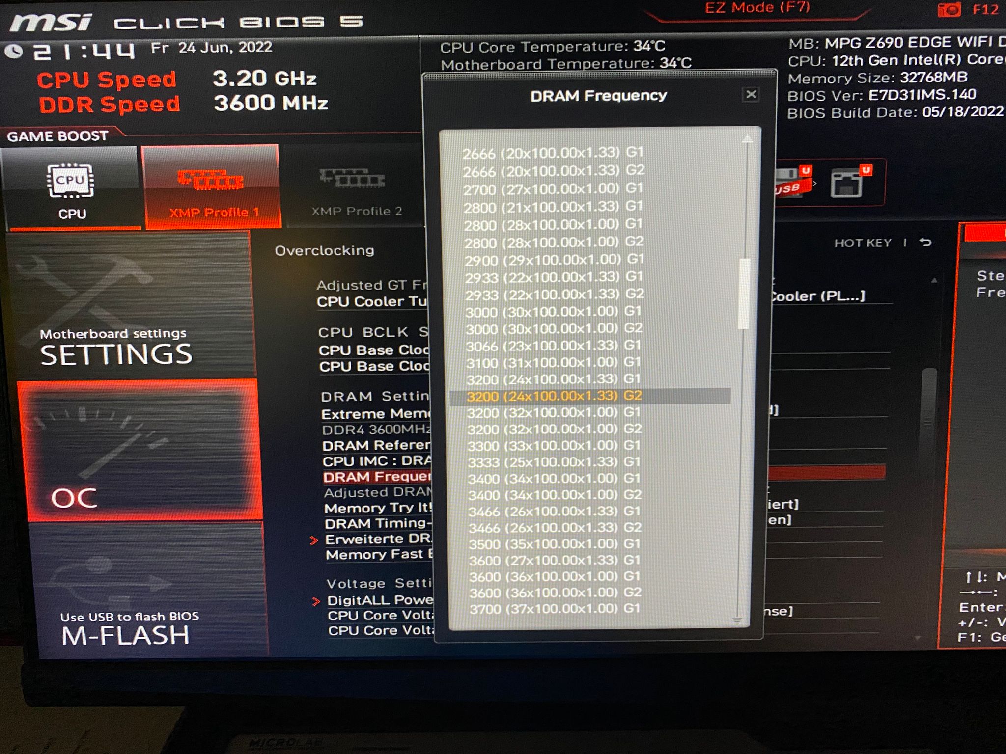 Also zur Absicherung nur: XMP anlassen und die DRAM Frequenz auf 3200MHz stellen, richtig? Weil da werden mir auch 3200MHz 1.00 , 1.33 G1, G2 etc. noch on top angezeigt. Also nicht nur eine Auswahl mit 3200MHz, sondern mehrere.