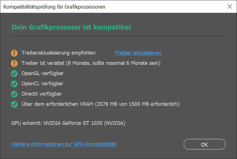 Neueste Treiber für die 10er Serie 1030 GT installiert, bringt nur leider nix.