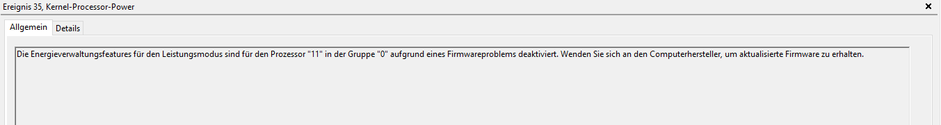 In der Windows Ergebnis anzeigen werden mir zudem nur 2 "Fehler" angezeigt bis auf bei der Anzeige mit dem Prozessor dort folgenden dann mehrere Fehlermeldungen