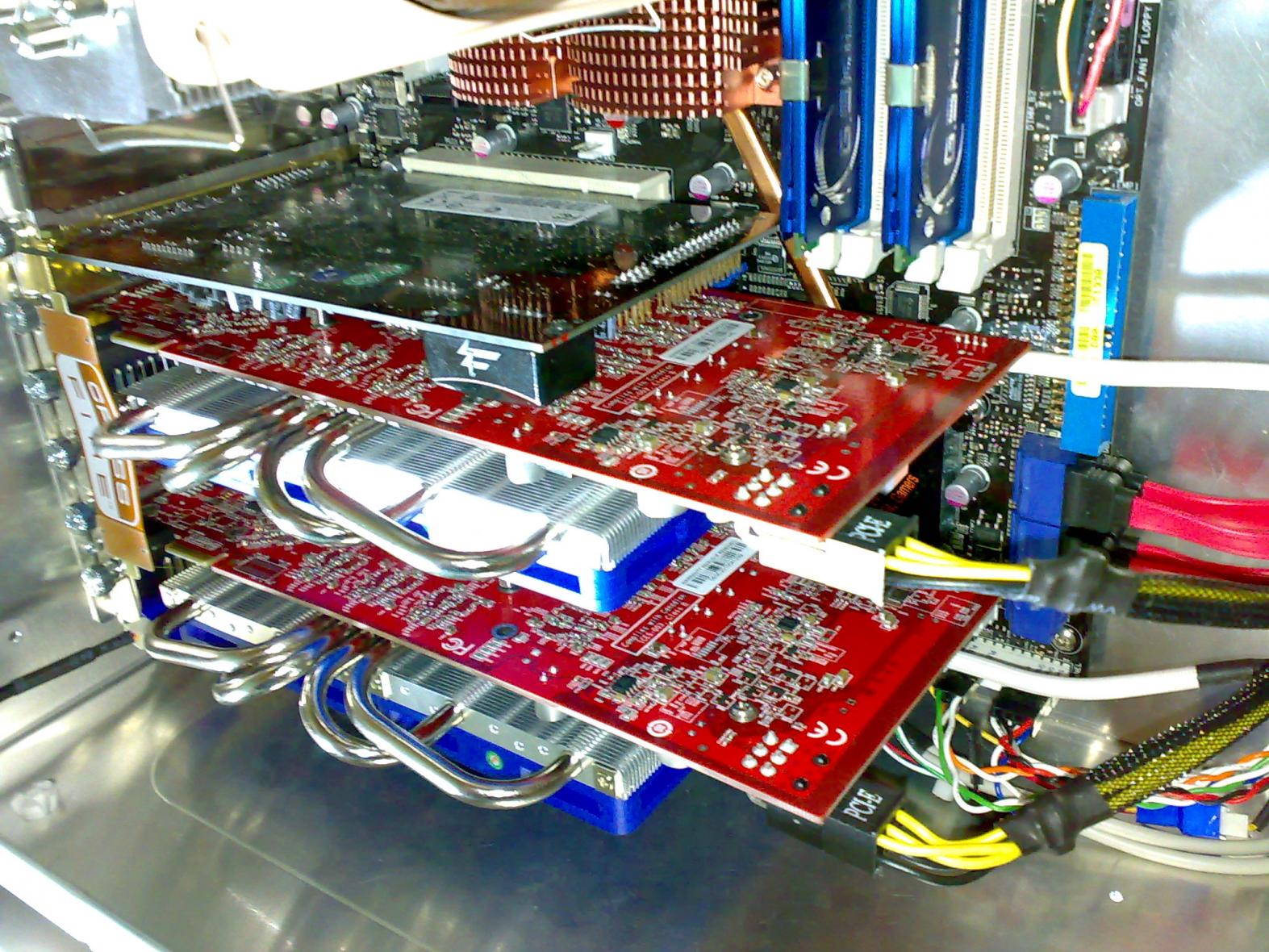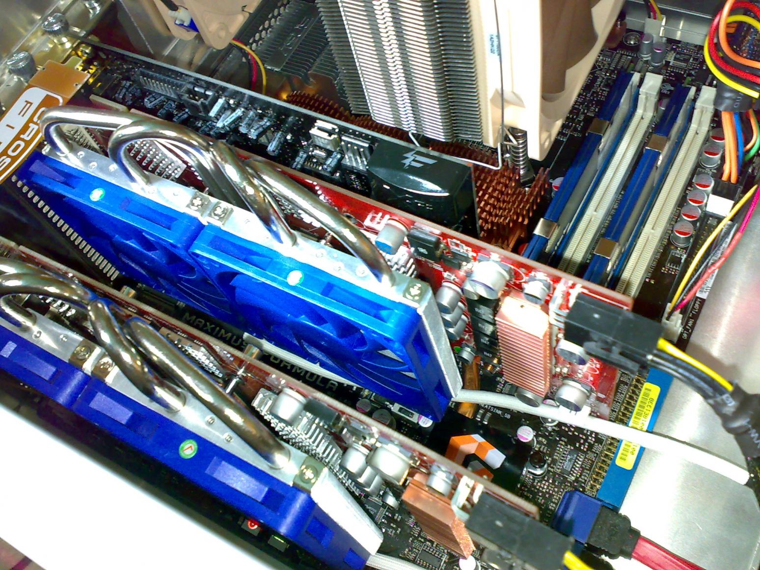hatte mich mal nach VGA Kühlern für meine beiden 8800 GTS 512 umgeschaut und bin auch recht schnell auf den AC Accelero S1 gestoßen. In Verbindung mit den optionalen Lüftern soll er ja recht ordentlich kühlen. Nun frage ich mich aber, ob er auch auf zwei Karten passt die im SLI laufen. Vielleicht hat ja jemand von euch schon Erfahrung mit dem Kühler und SLI und kann mir weiterhelfen.