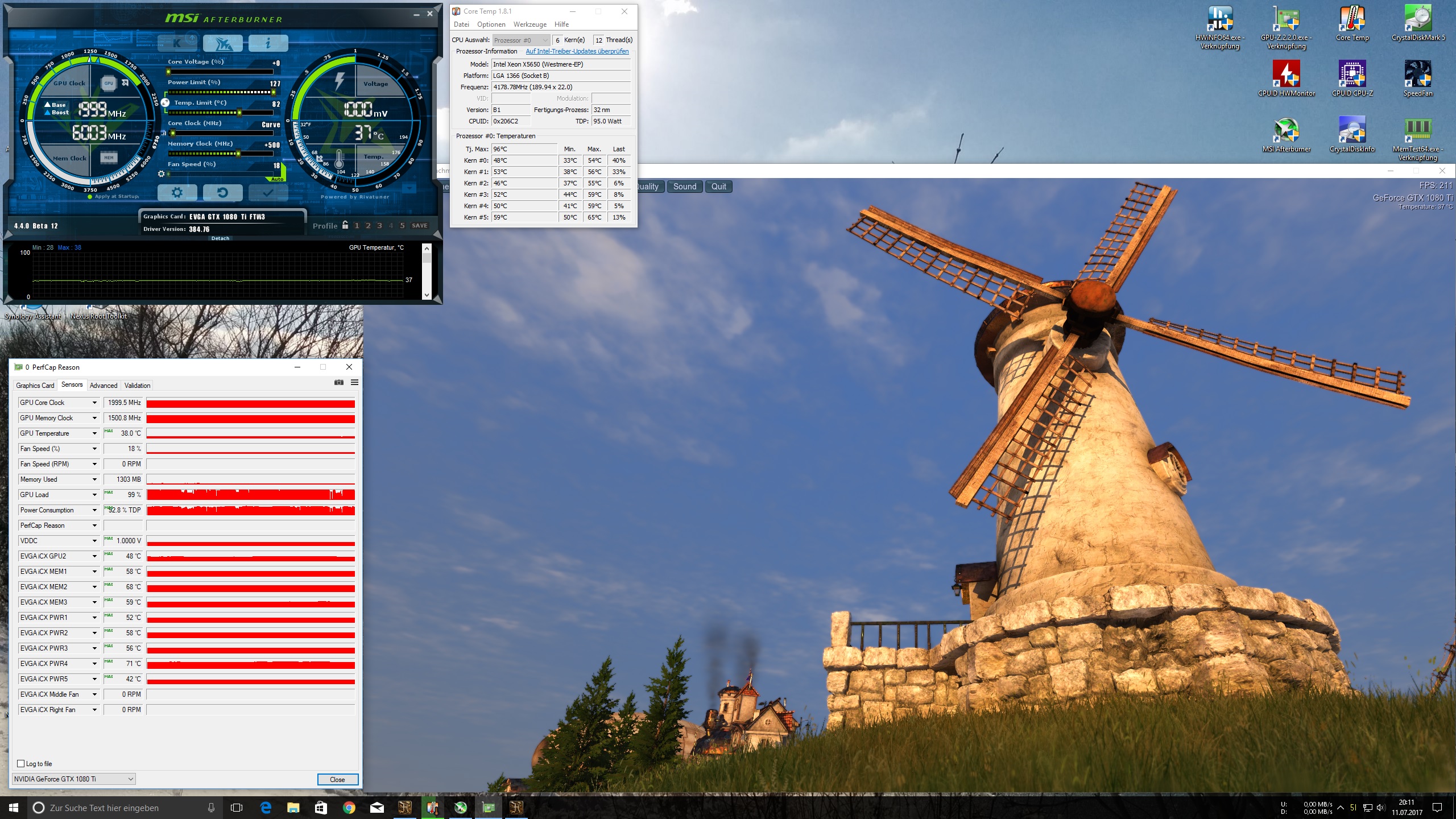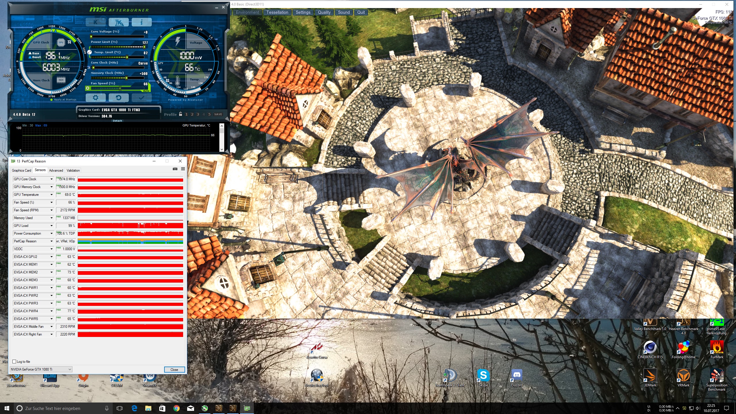 EVGA 1080ti FTW³ nach ca. 45min Heaven 4.0 mit 1V Kurve