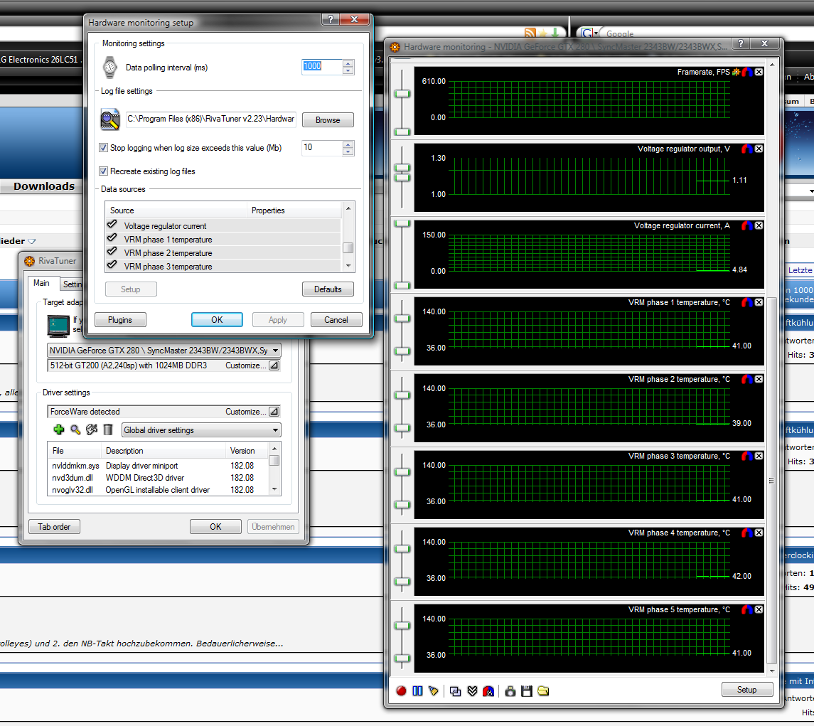 Vielleicht ist bei Dir im Riva Tuner einfach das betreffende Plug-In nicht aktiviert? Die GPU-Z-Werte habe ich auch in der Form, allerdings werden die Werte nicht korrekt bei mir ausgelesen. 1,2375V liegen definitiv nicht an meiner GPU an ... *kopfkratz*