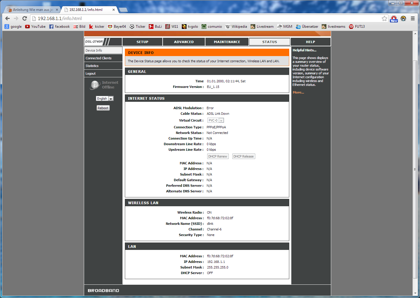 so, habe ihn jetzt mir einem LAN-Kabel an meinem PC (ganz der Anleitung entsprechend) verbunden.