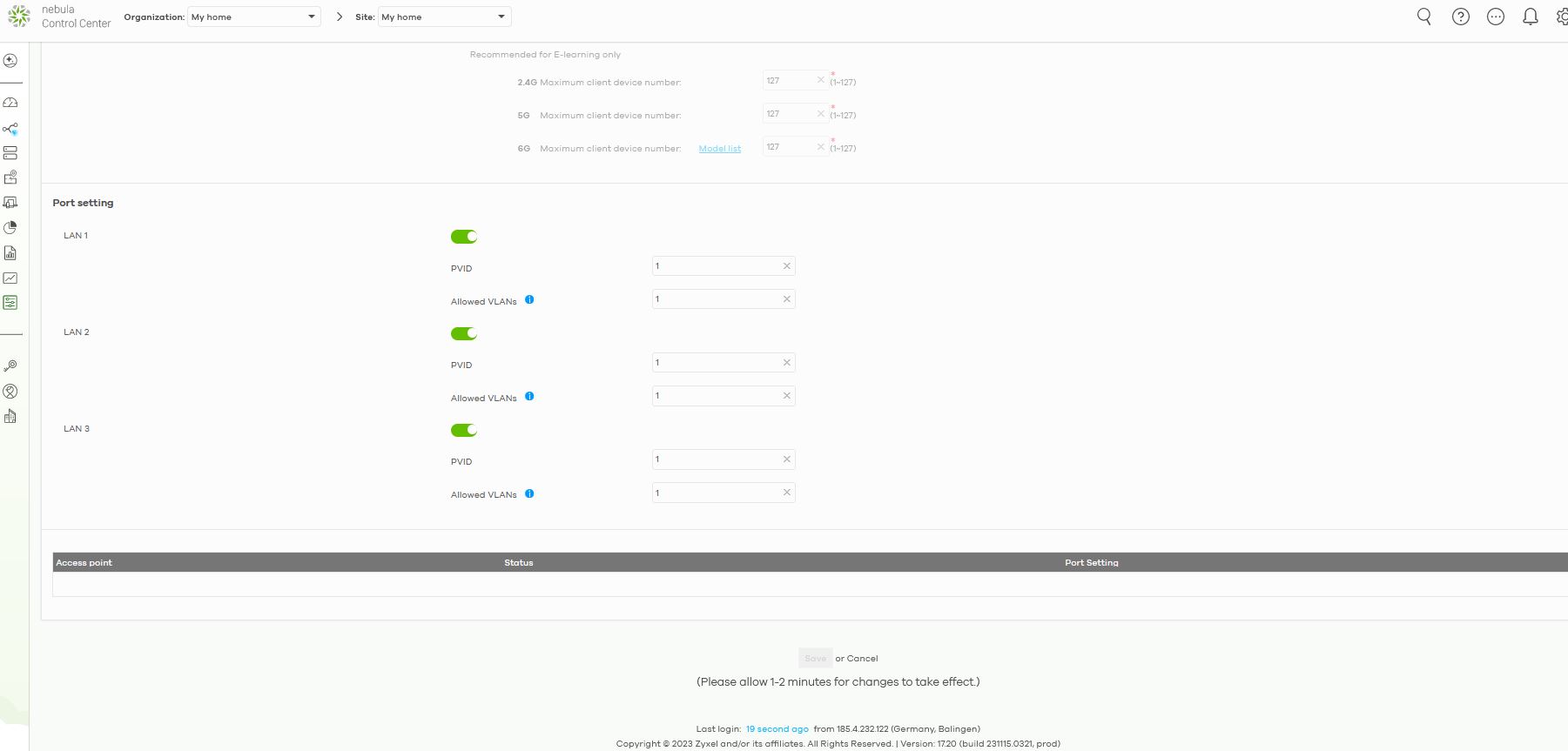 [*]Patchfeld: tsnetworks CAT 6a Patchpanel Verteilerfeld 24 Port - Access-Points (1x im OG und 1x im DG): ZyXEL Cloud WiFi6 AX1800 Wireless Access Point (802.11ax Dual Band), 1,77 Gbit/s, Verwaltbar über Nebula APP/Cloud oder Standalone, bis zu 4 Separate