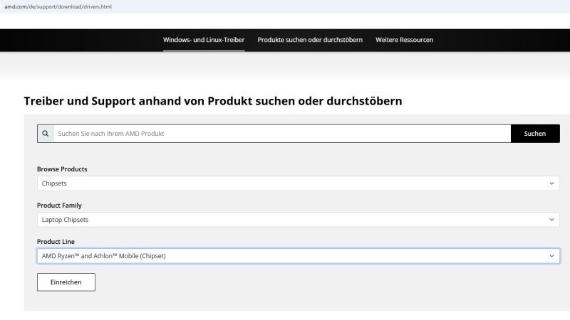 AMD Ryzen and Athlon Mobile (Chipset)" klicken. Und schließlich darunter auf "