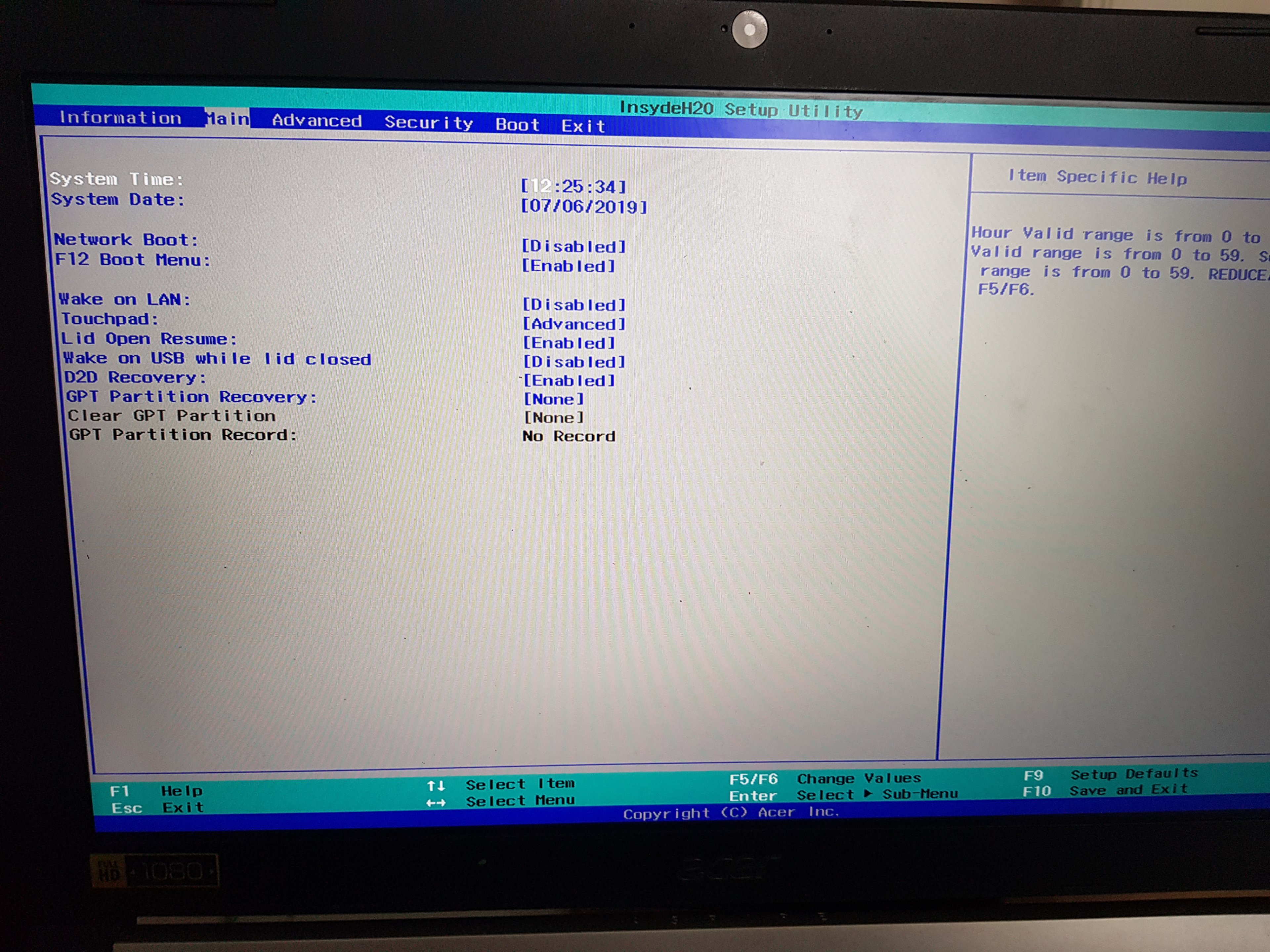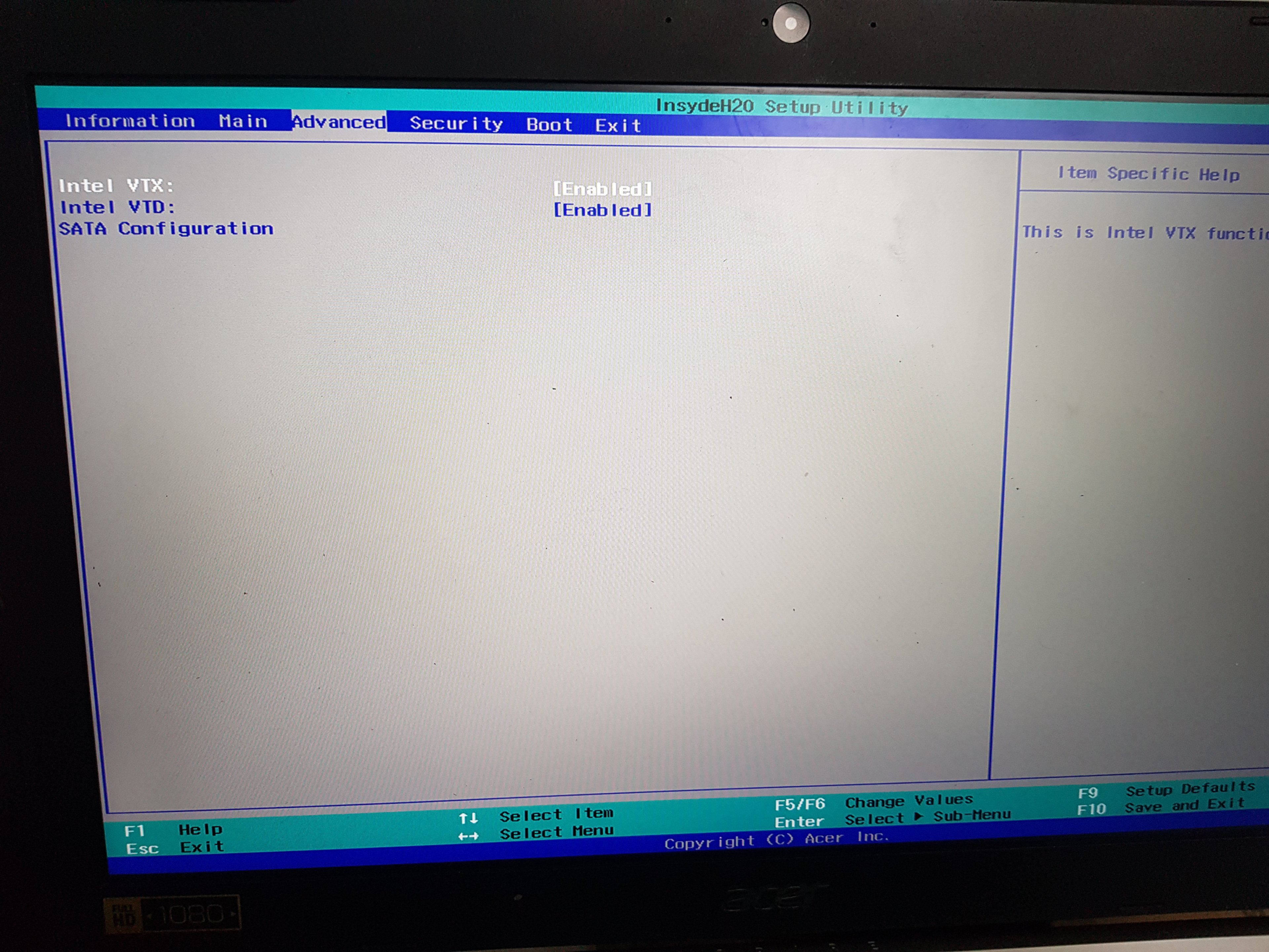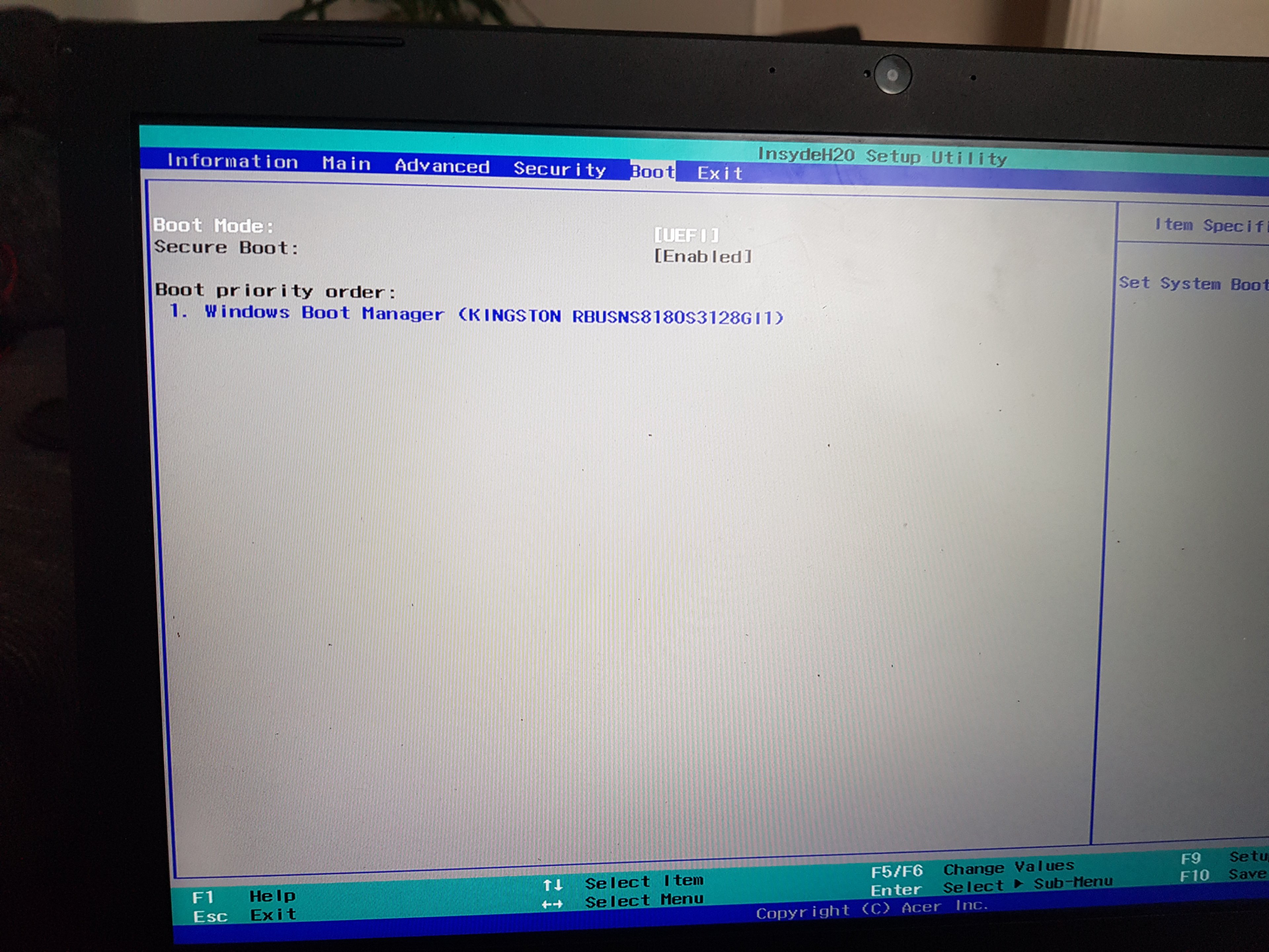 Sobald man in Startet kommt kurz das Acer Logo danach geht es ohne Umwege in das Bios.