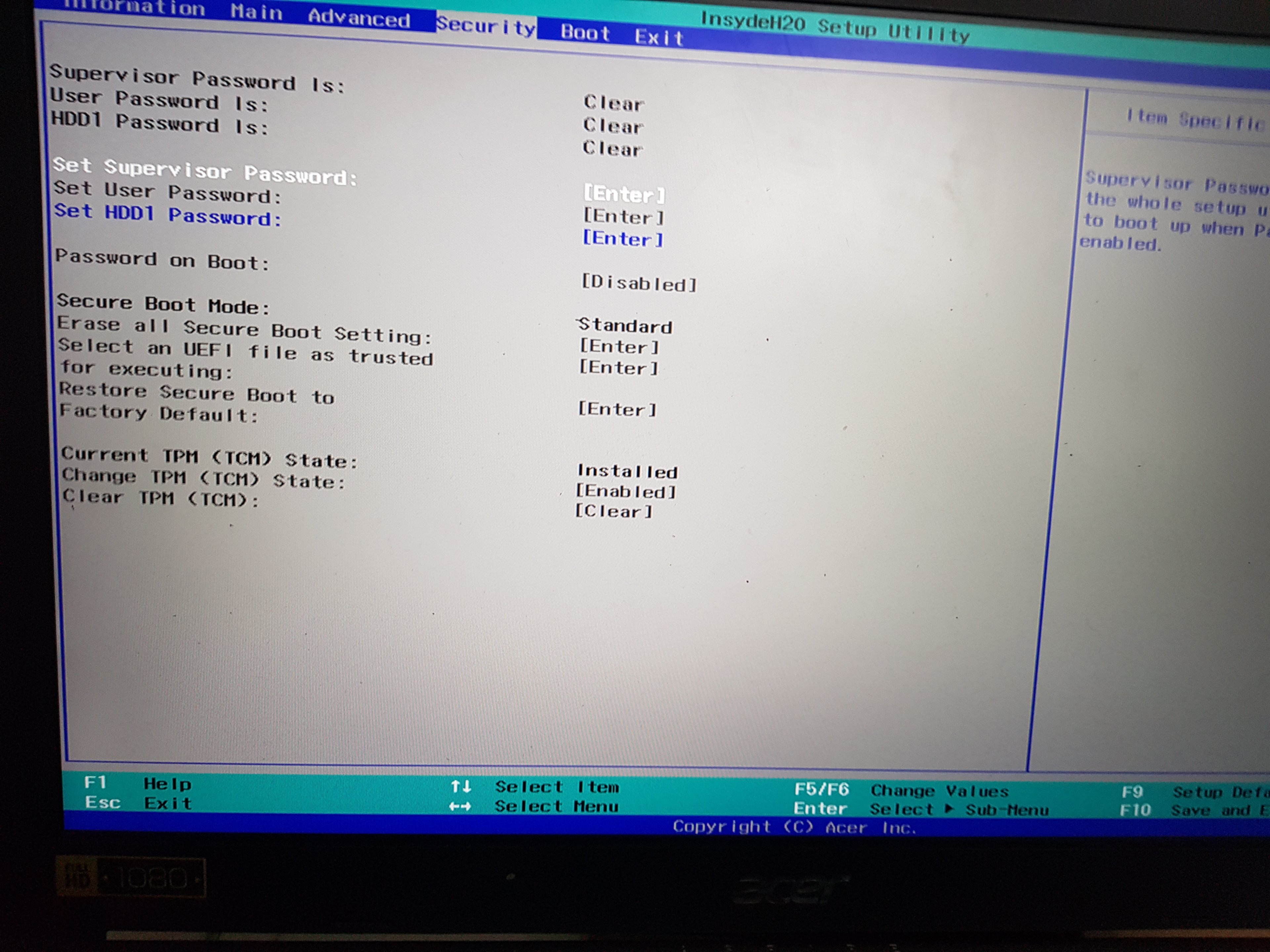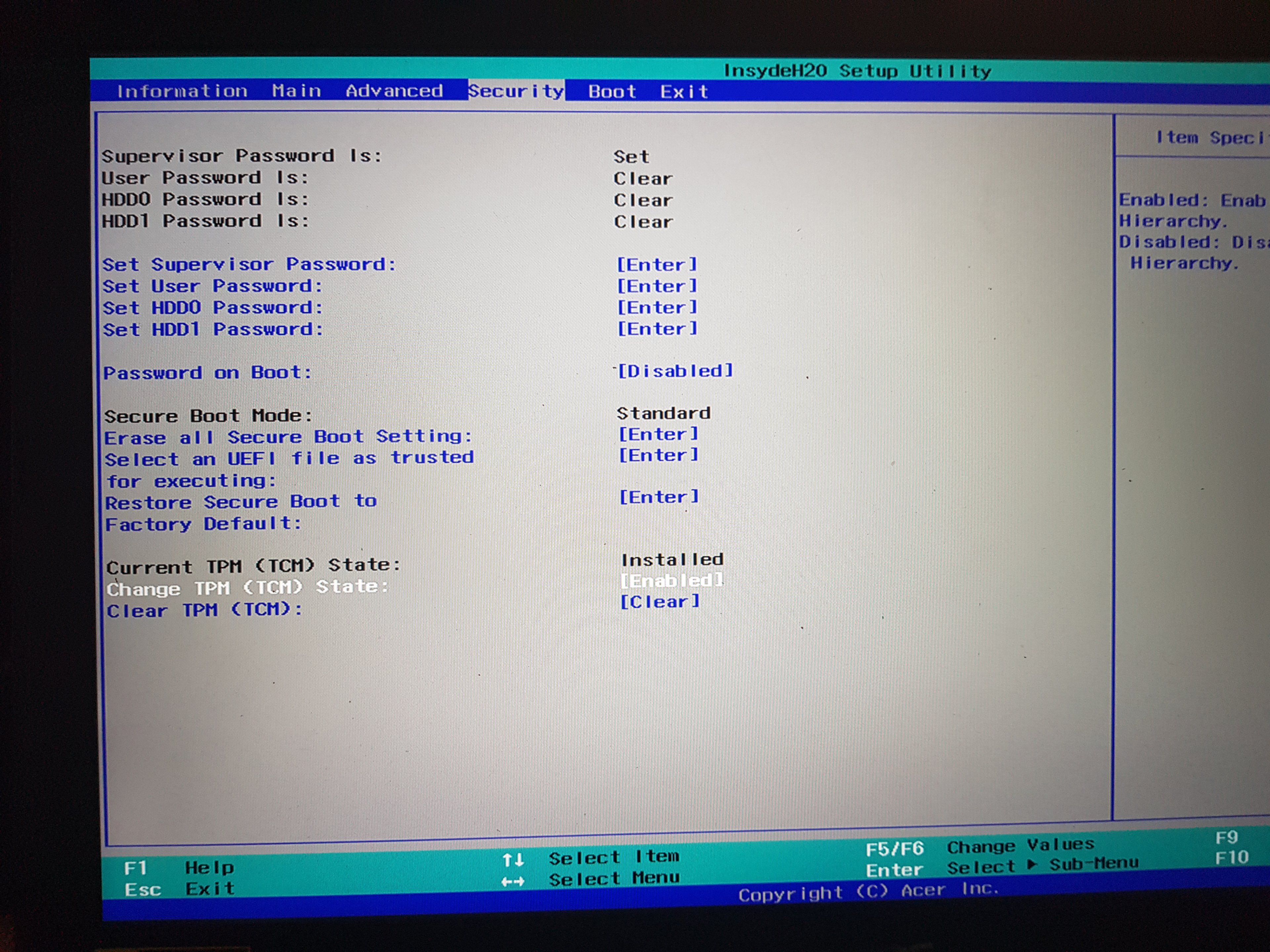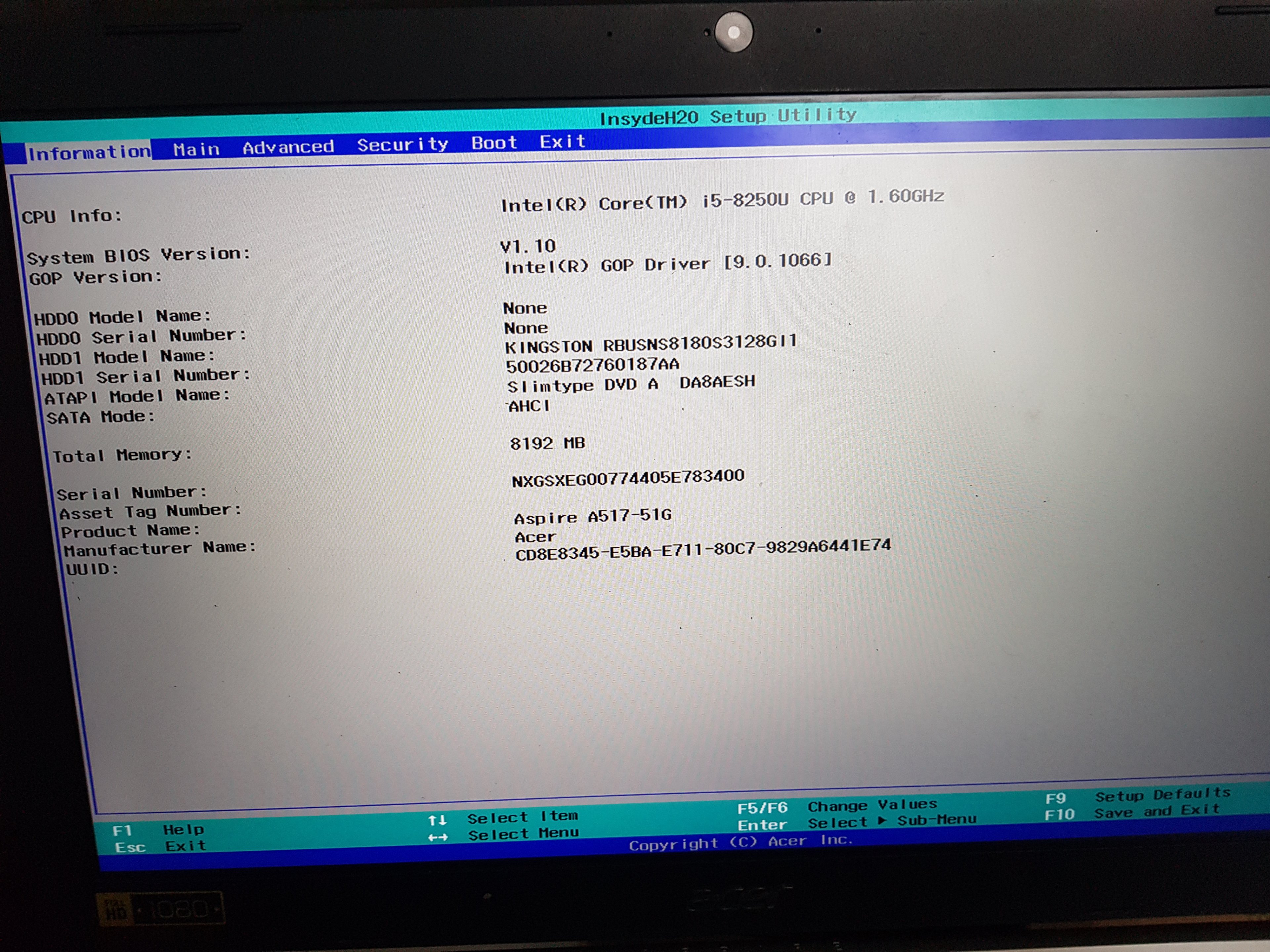Sobald man in Startet kommt kurz das Acer Logo danach geht es ohne Umwege in das Bios.