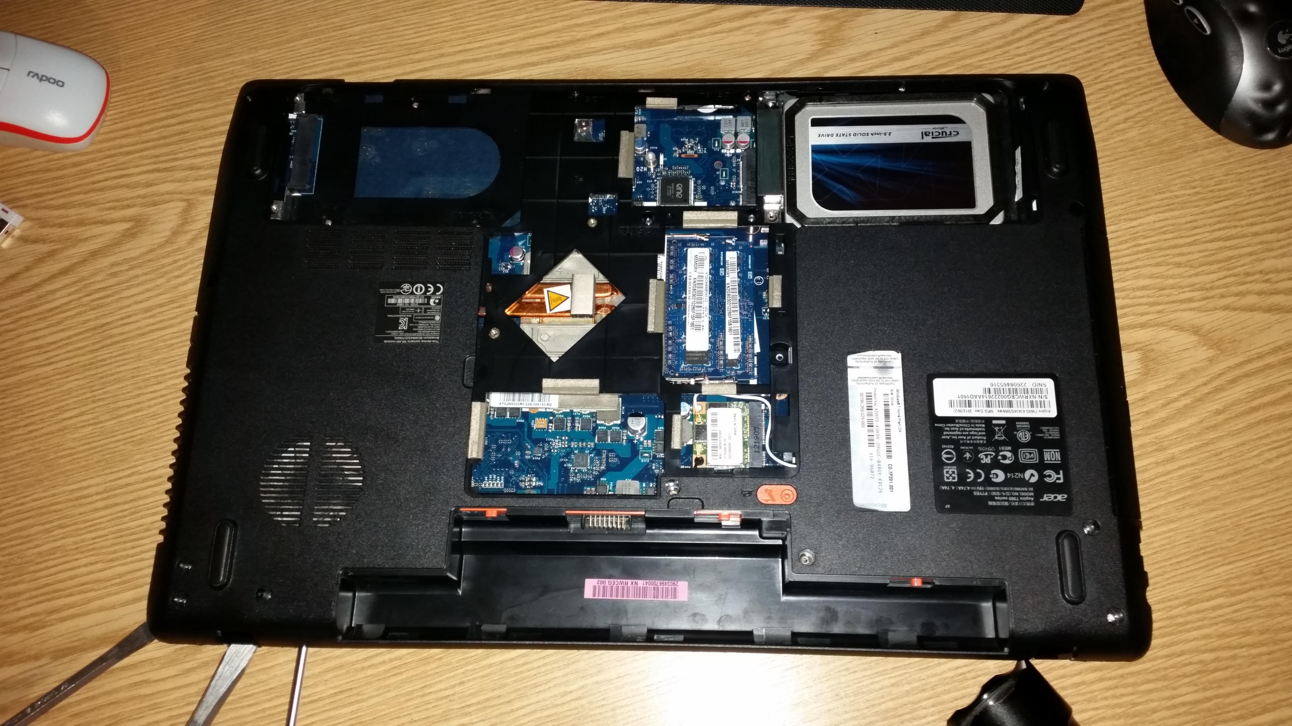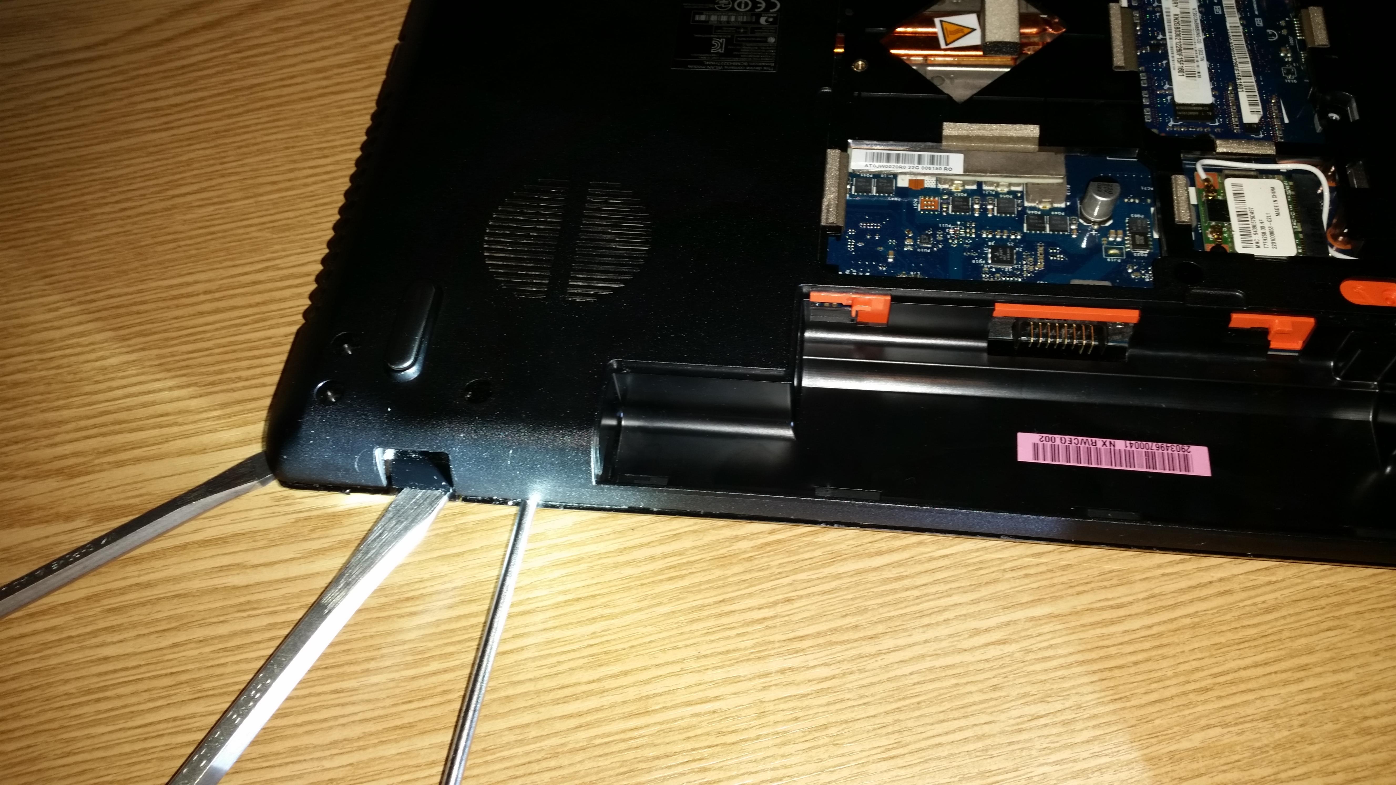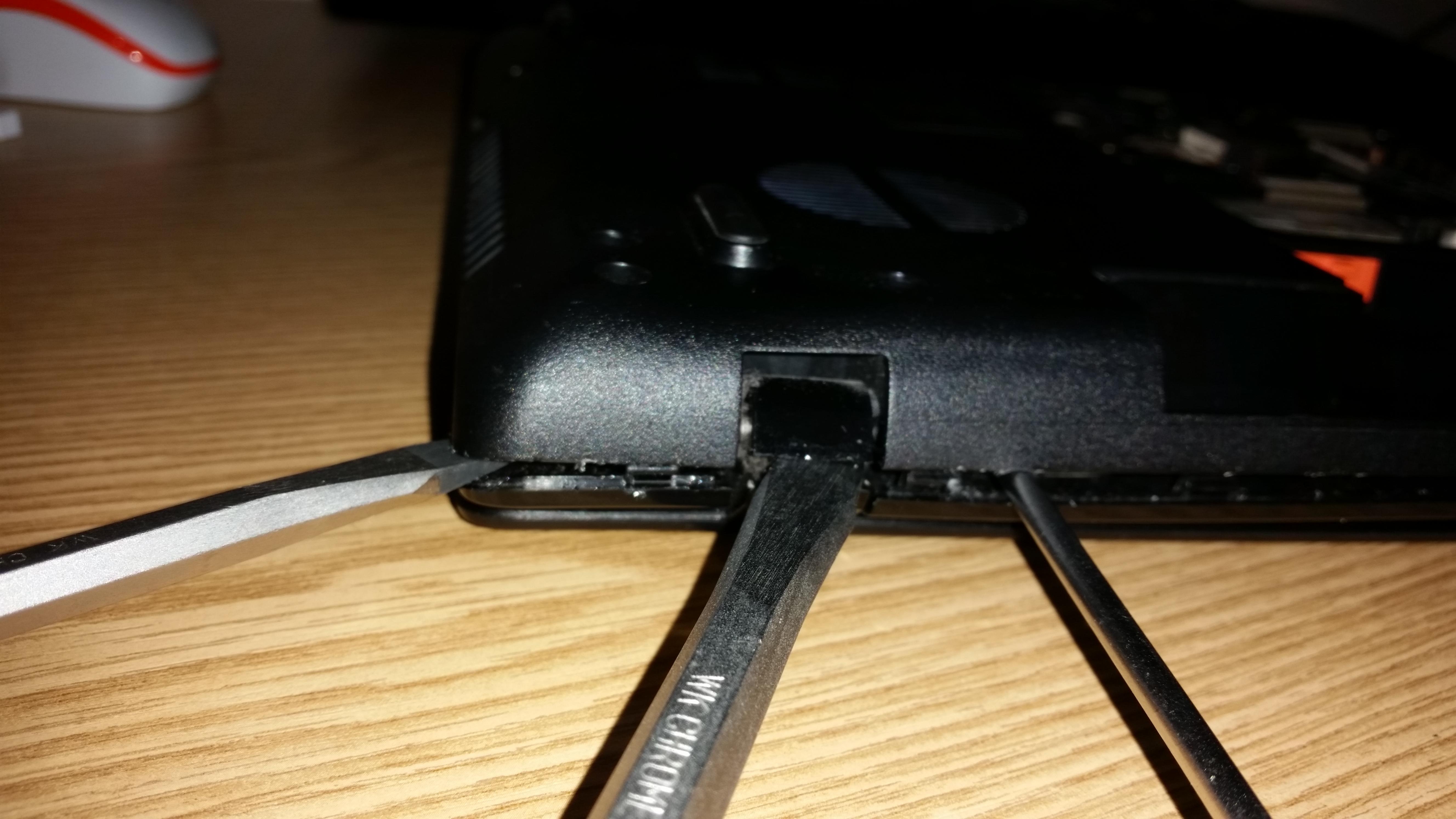 ich habe hier das Notebook eines Kollegens stehen (Acer Aspire 7560G) und wir möchten den Lüfter reinigen. Leider bekommen wir das Gehäuse nicht geöffnet. Wir haben alle Schrauben entfernt und alle Haken geöffnet, aber bei den Scharnieren geht es nicht weiter (siehe Fotos). In der Anleitung steht dazu auch nichts. Hat jemand eine Idee?