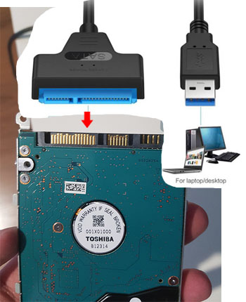 Die Festplatte hat ja eine Schnittstelle oben, mit der sie im Laptop verbunden ist. Mit welchem Kabel kann ich nun die Festplatte mit einem anderen Laptop verbinden, um Daten zu sichern?