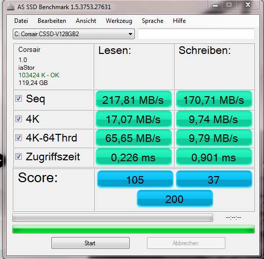 Die Festplatte hat eine durchschnittliche Transferleistung und Zugriffszeit. Das ist aber auch nicht weiter schlimm, da sie demnächst eh durch eine SSD ersetzt wird.