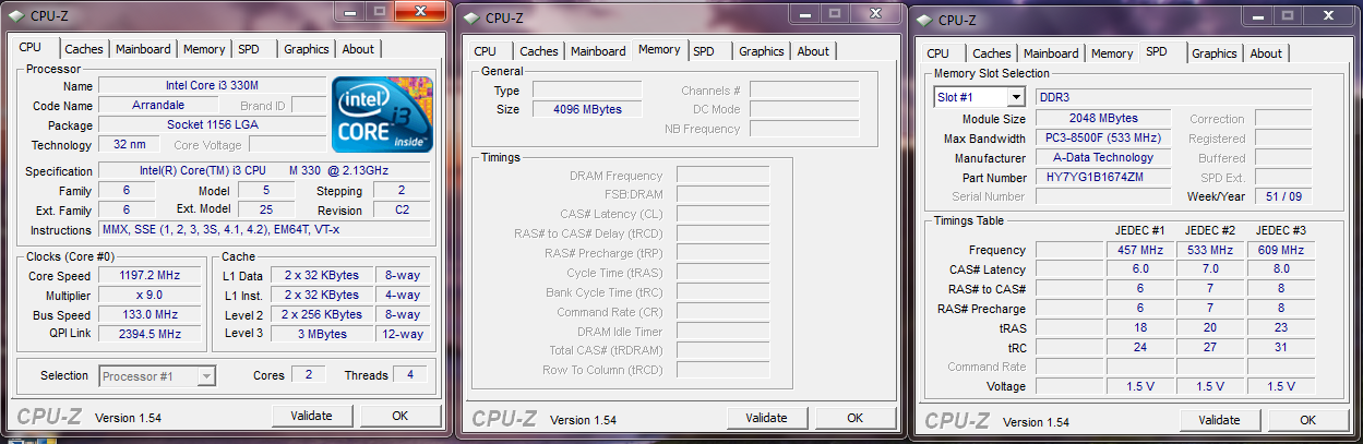 •Core i3-330M 2x 2.13GHz