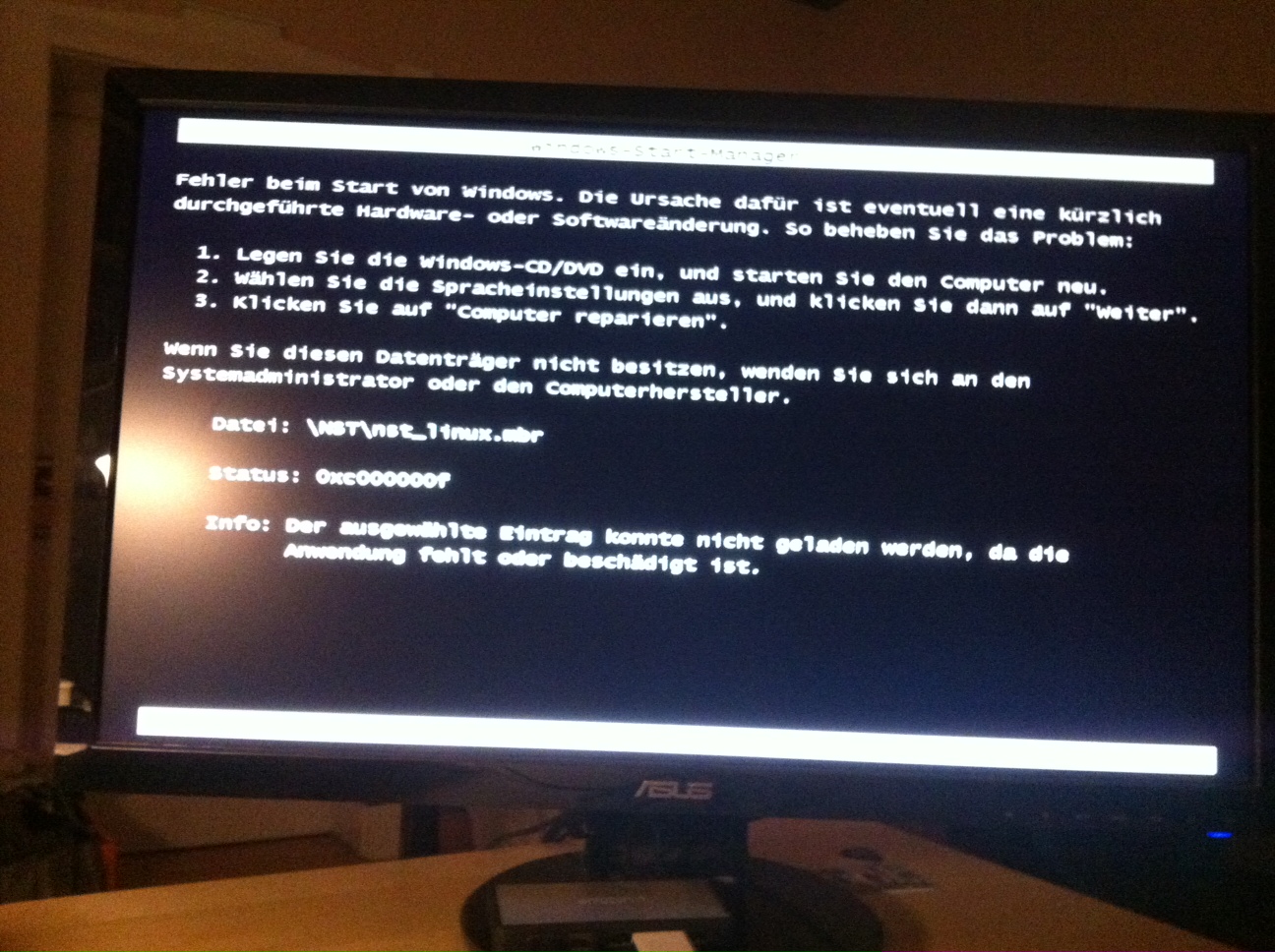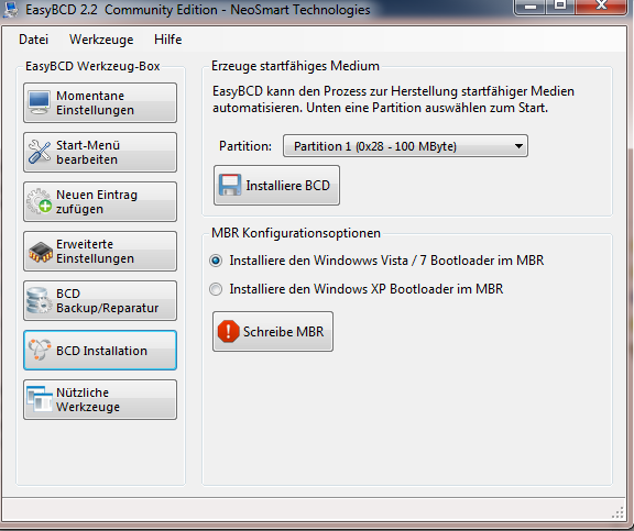 Im Anhang sind meine Einstellungen für EasyBCD sowie die Fehlermeldung für den Linux Eintrag.