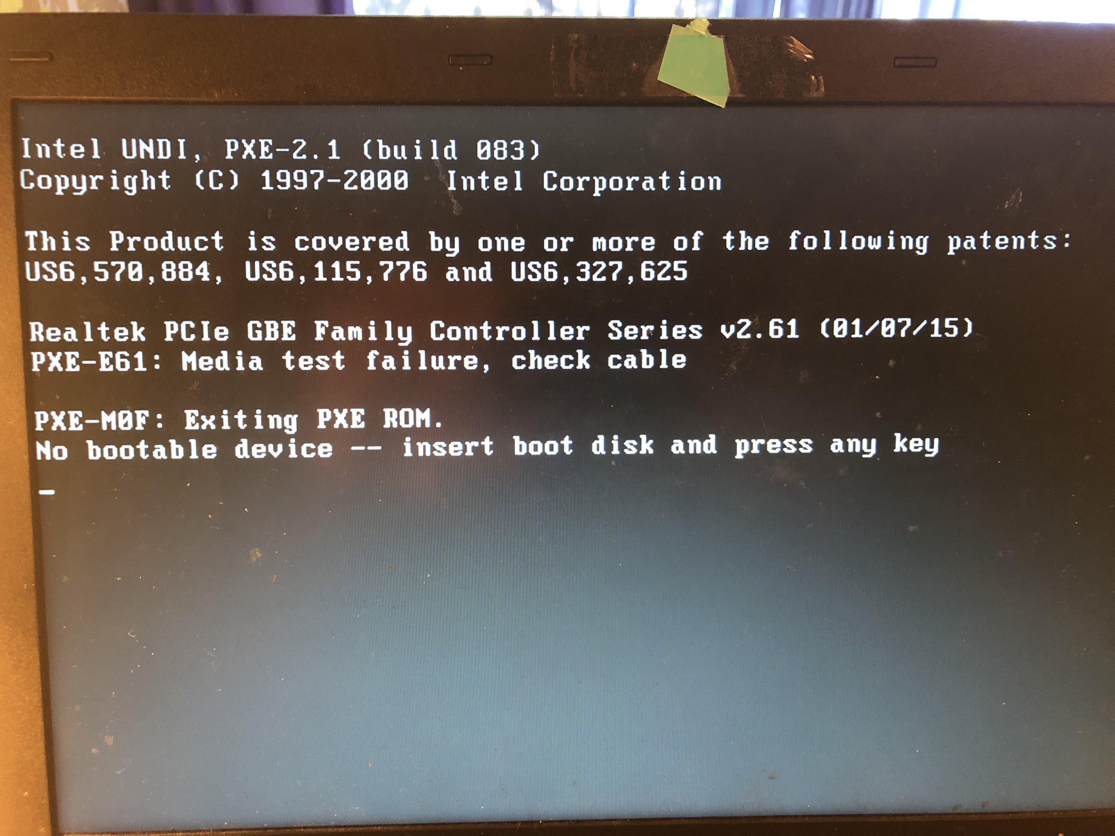 Nun kommt die Fehlermeldung: „ No bootable Device — insert boot disk and press any Key „