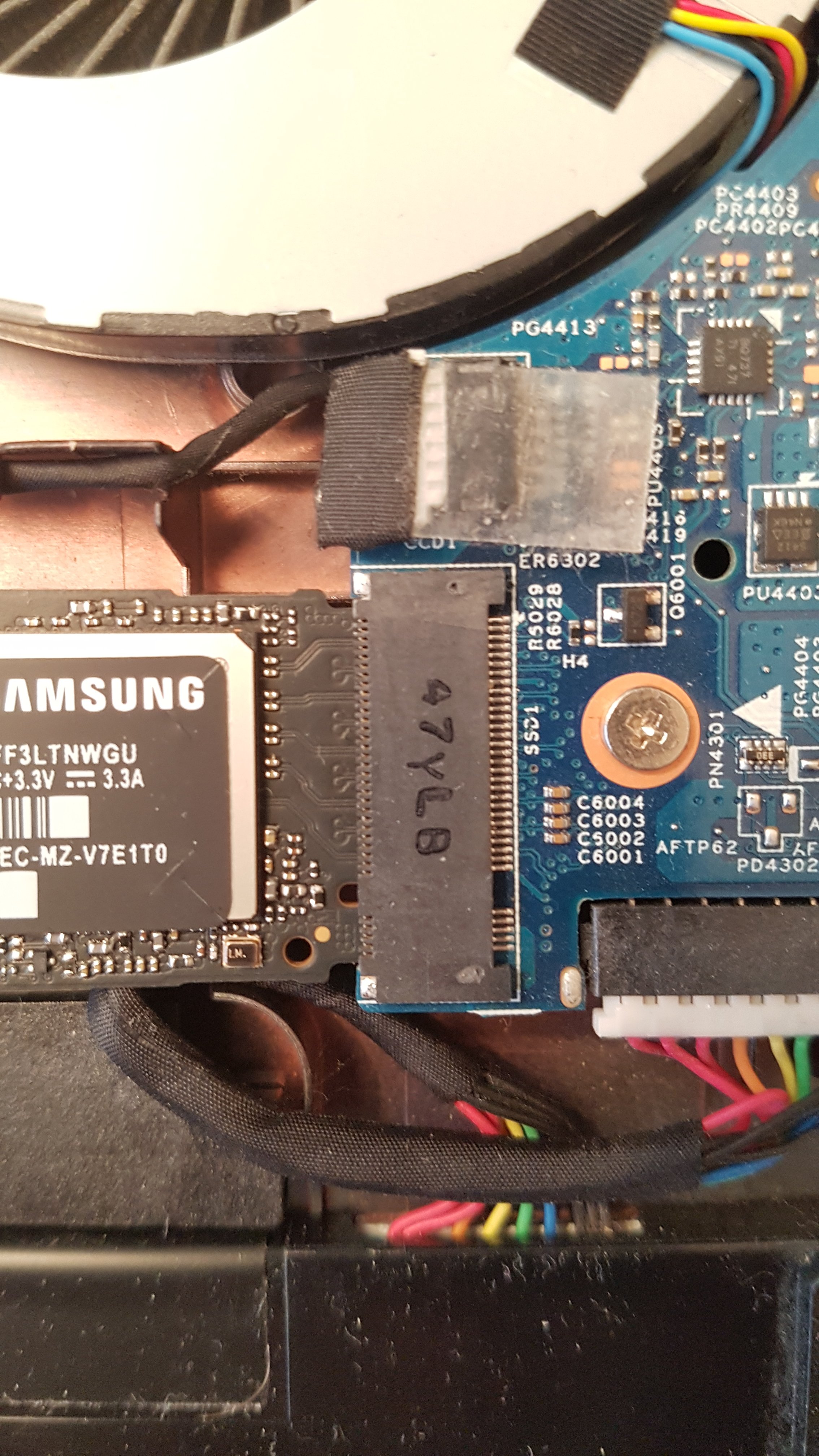 Anbei habe ich 3 Fotos meiner M.2 Schnittstelle, die 970 Evo hat exakt die gleiche Pinanreihung wie mein Anschluss, daher wundert es mich wieso die Festplatte nicht funktioniert...