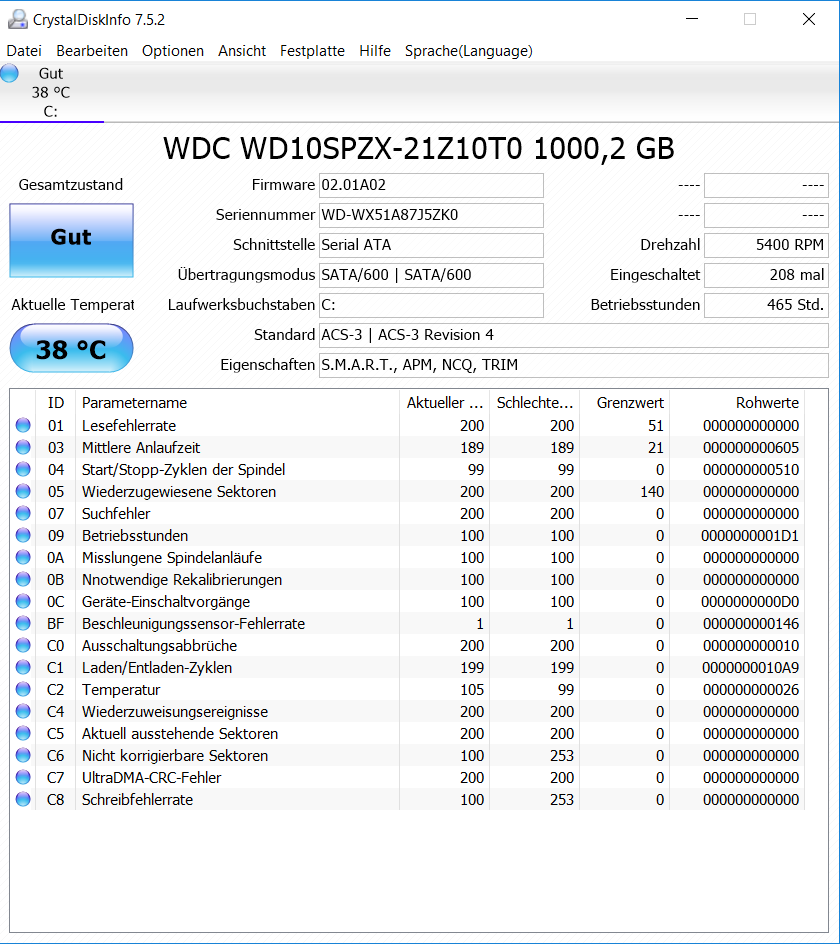 Habe noch einen Screenshot von Crystal Disk Info hochgeladen, kann damit leider wenig anfangen.