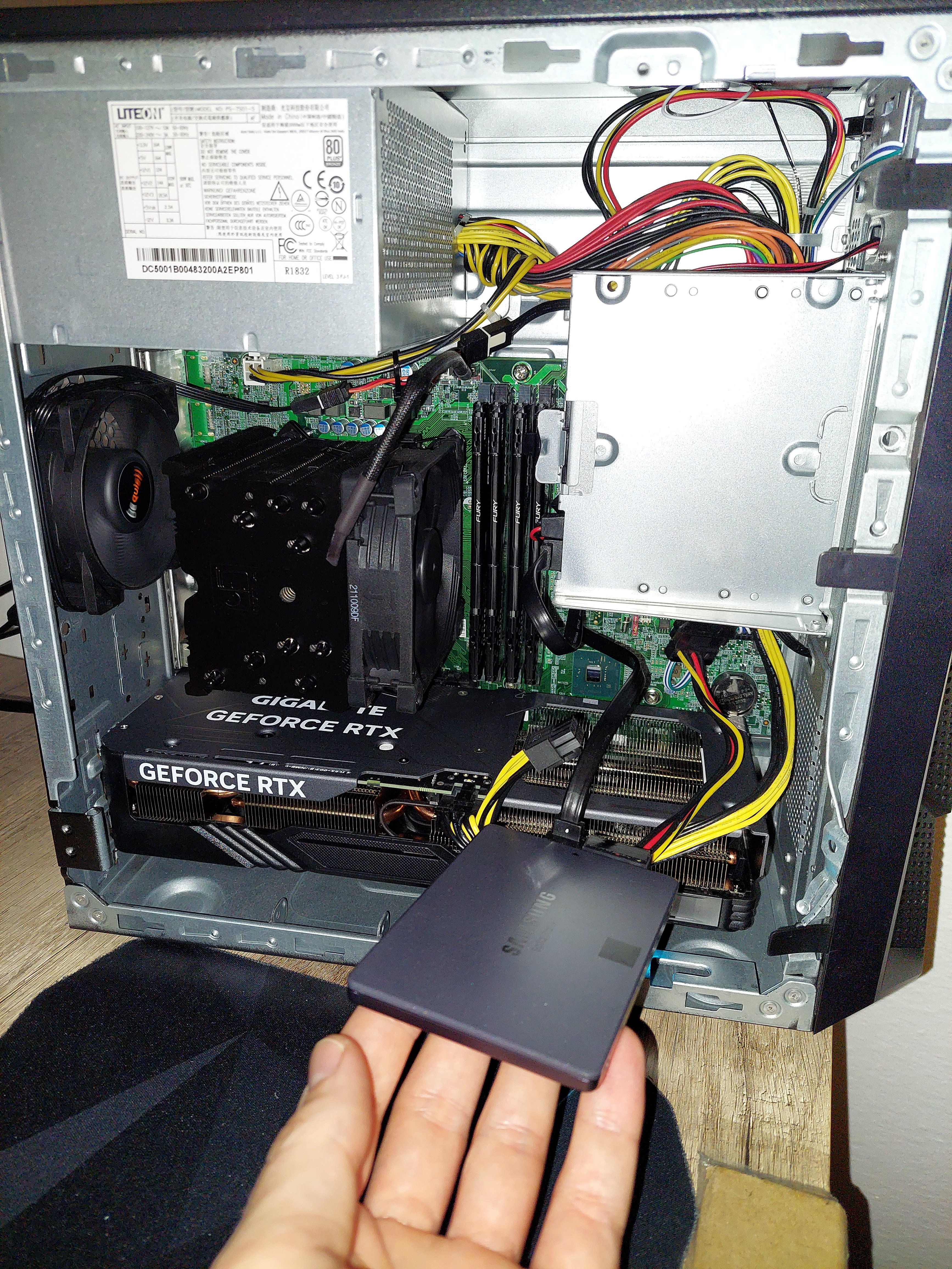 Eine NVIDIA Geforce RTX 4060Ti , 4x8 GB DDR4 mit 2666