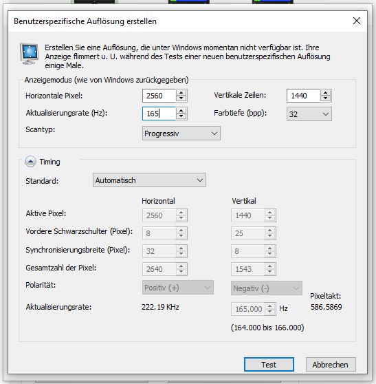 Custom-Auflösung - ich kann normal nur 144 oder 170 Hz auswählen für WQHD, bräuchte aber 165 Hz @ WQHD.