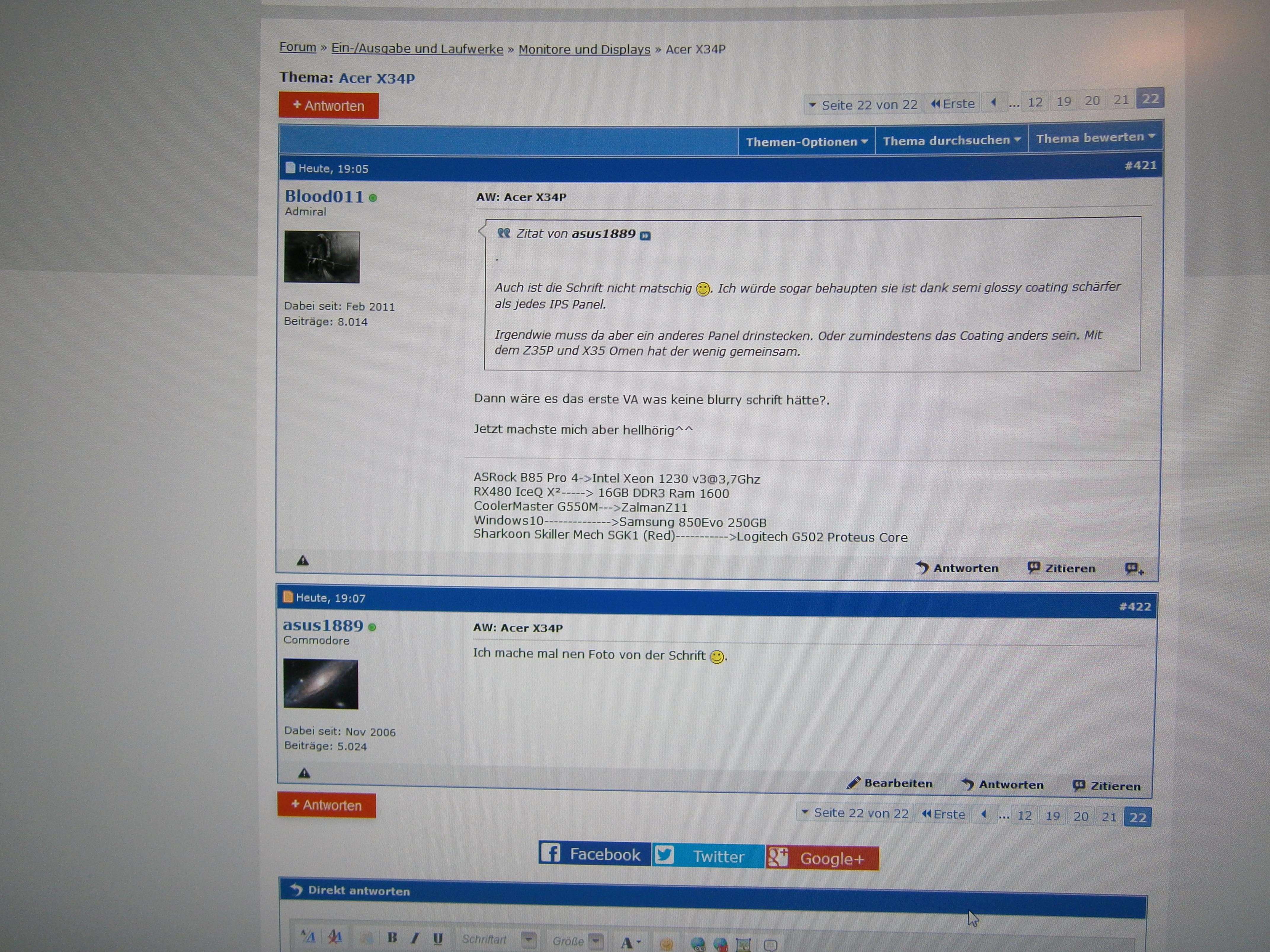 Ich hatte nun also den DELL 27" wieder vor mir und war irgendwie enttäuscht. Denn, die Farben waren viel verwaschener als beim IPS von AW und die Immersion der 34" war natürlich nicht mehr gegeben. Ich habe den 34" direkt vermisst.