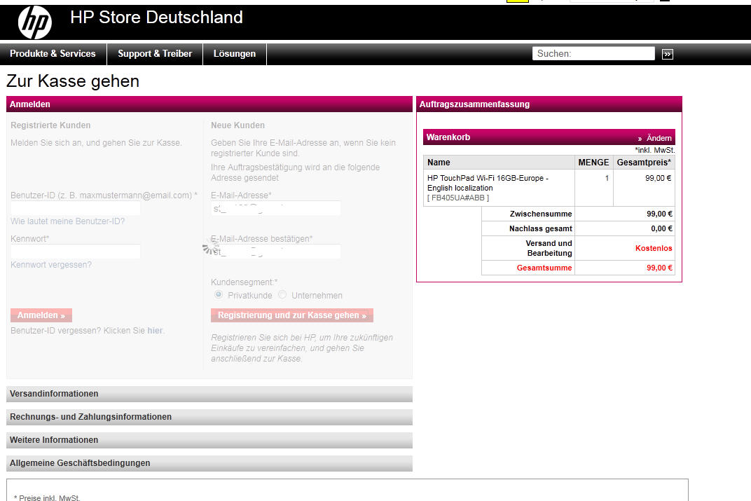 und die HP Seite bringt nach dem Kaufen Button nichts mehr auch bei 10 Threads die die ganze Zeit aktualisiert werden