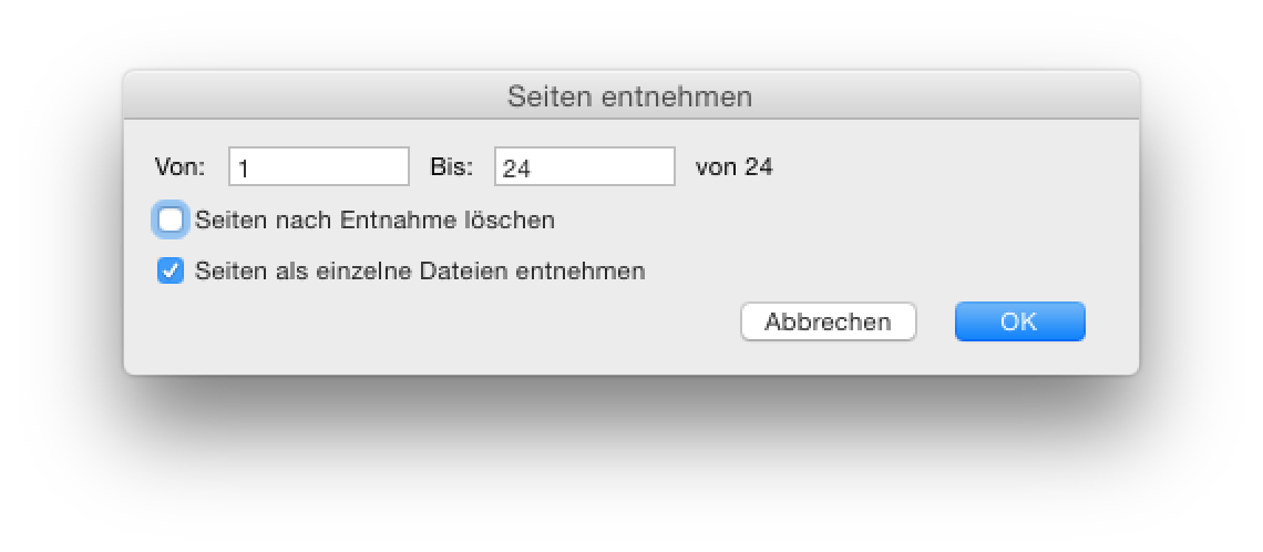 Mein Ziel ist es aus einer mehrseitigen PDF Datei einzelne PDFs zu erstellen.
