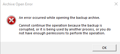 Wenn ich versuche diese mit Acronis zu mounten bzw. zu öffnen, erscheint eine Fehlermeldung (archive open error an error occurred while opening the backup archive).