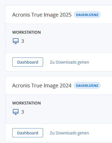 Kriegst du schon ab 20€, siehe Geizhals Link weiter oben.Oli_P schrieb:Acronis True Image 2024 Essentials gibts als Jahres-Lizenz für 49,99€ pro Jahr