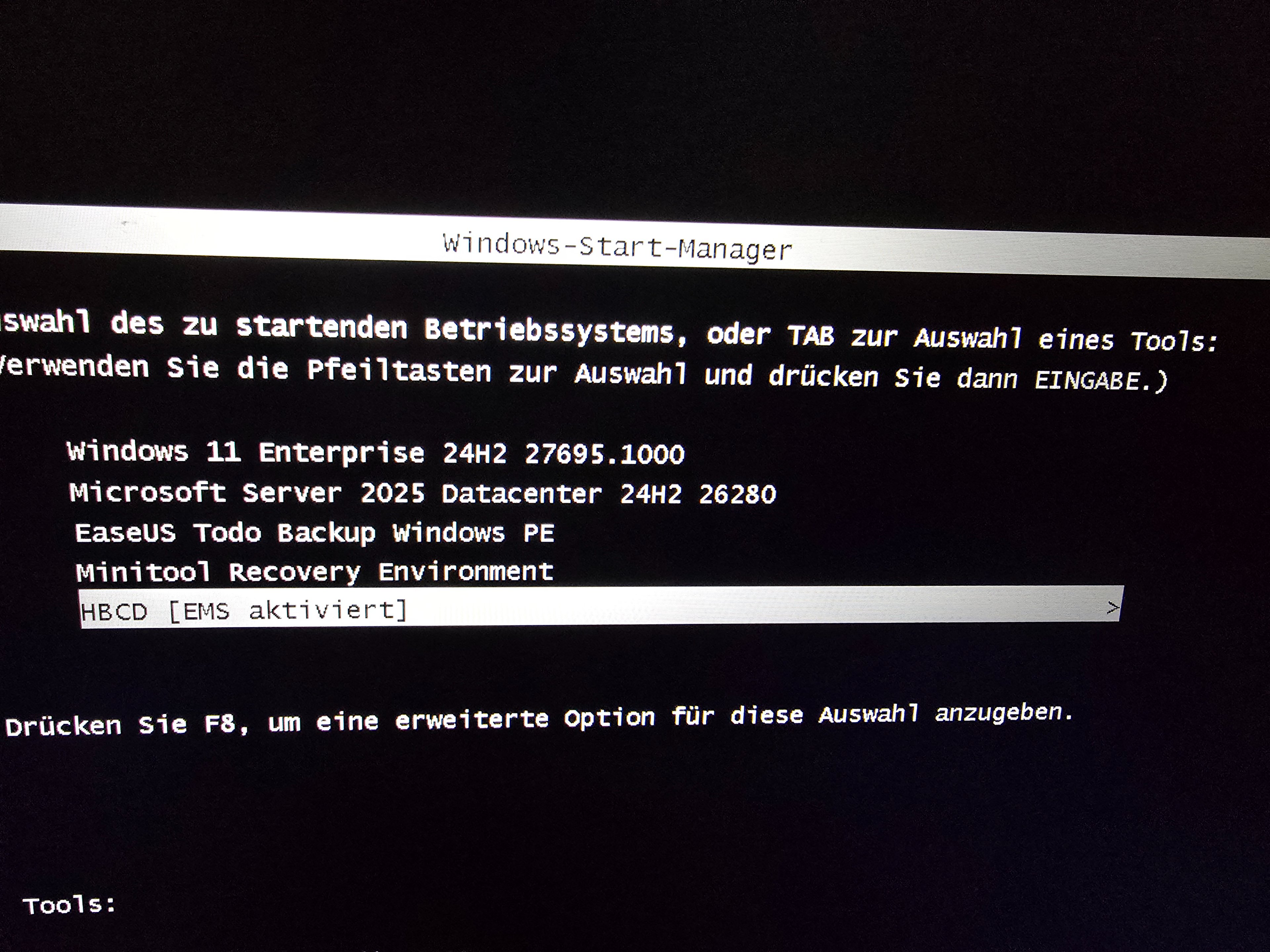Oder man nimm das programm easybcd kopiert die Winpe von Acronis ins Boot Verzeichnis von Win 10/11 und in easybcd, wĂ€hlt man die den aus und kann die dem beim NĂ€chsten booten auswĂ€hlen und den ist es sehr schnell Gebootet mit ssd Geschwindigkeit. đ