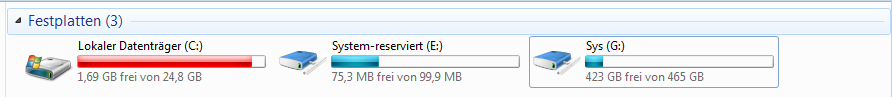 Allerdings waren 128er SSD da ein kleines Problem. Zu groß um zu sagen: „Alles ist C.“, zu klein um wirklich noch zu partitionieren (8.1 oder 10 würde ich schon mal 50GB gönnen [8-ung, diese Upgrades..!!] 7 weiß ich nicht, 40?) Also schlucke ich die Pille auf diesem großen C durch Installation von Progs die Vorteile der SSD zu nutzen unter Inkaufnahme der größeren Backups.