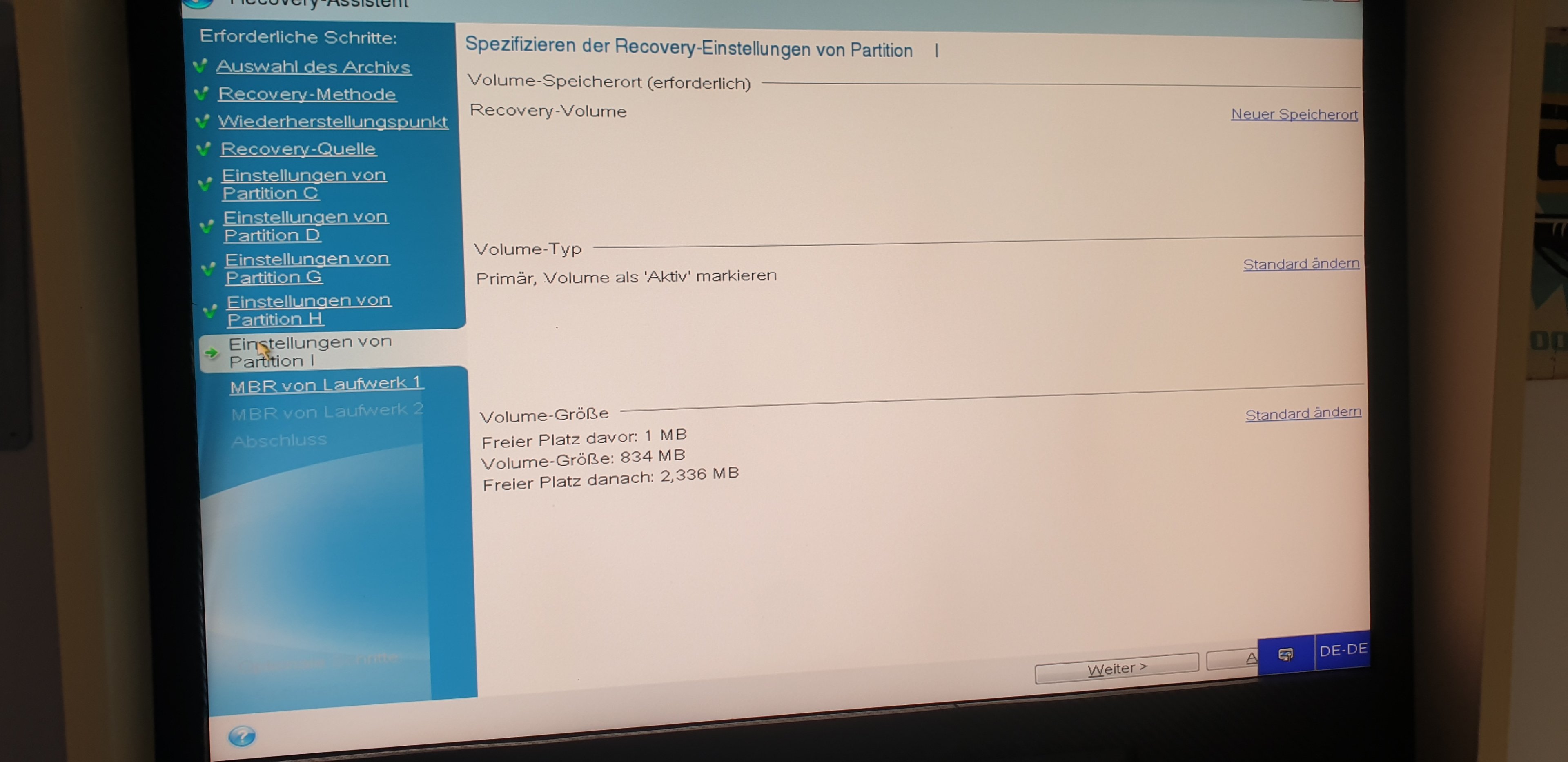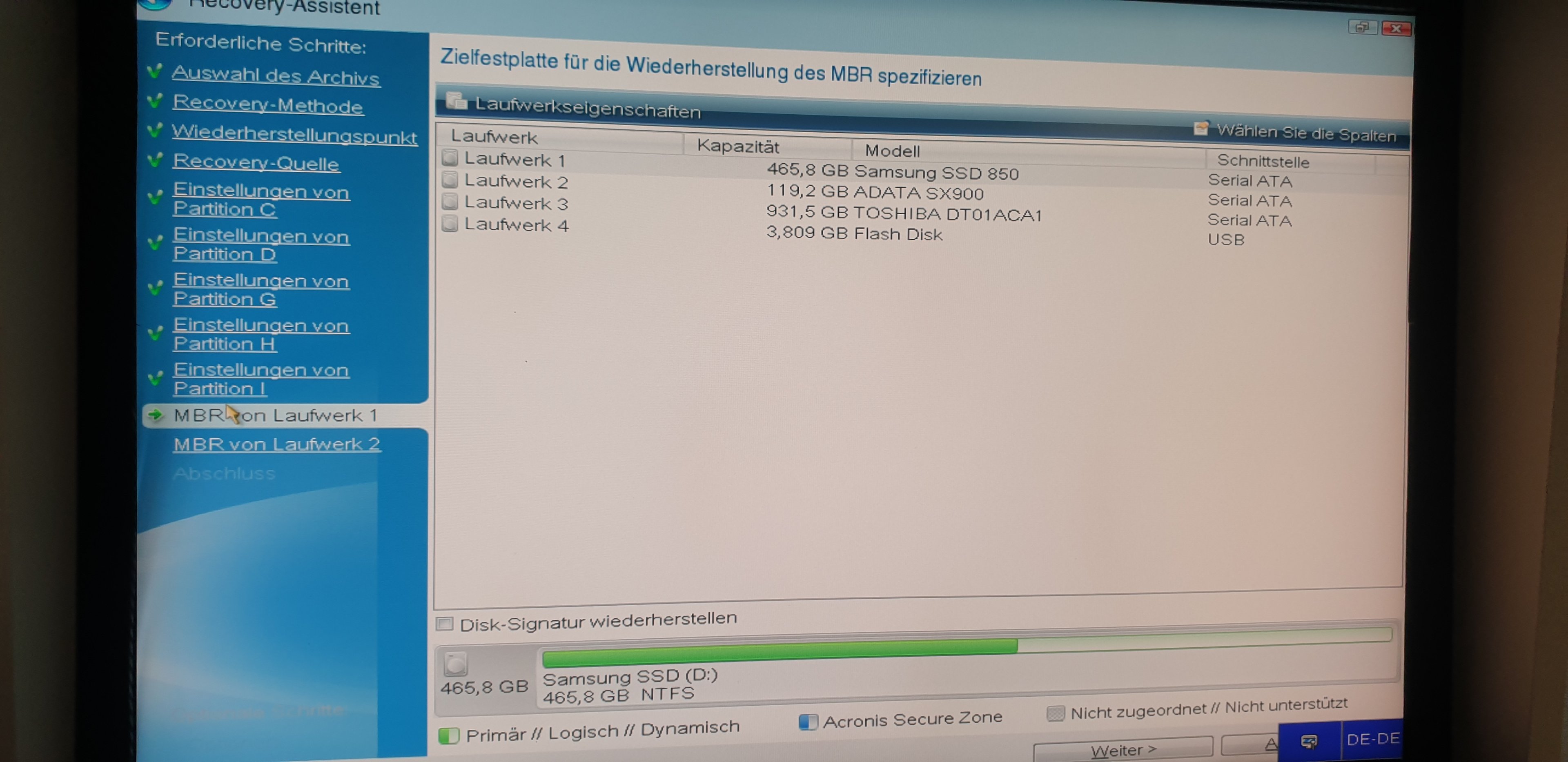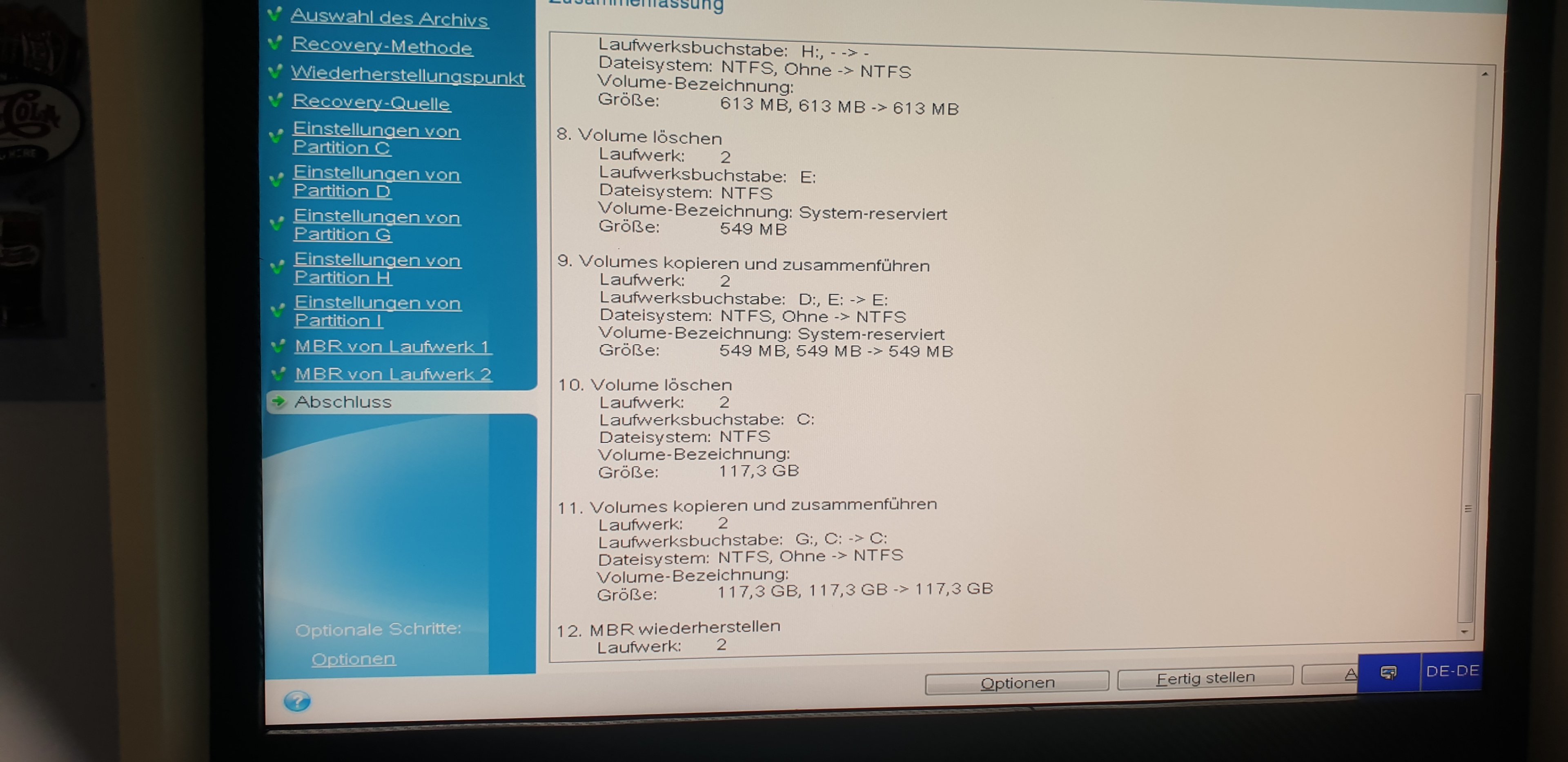 ich hab jetzt den Hacken gesetzt...hat leider nichts gebrachtPHuV schrieb:Bild 16, Disk Signatur wiederherstellen wurde nicht angeklickt.