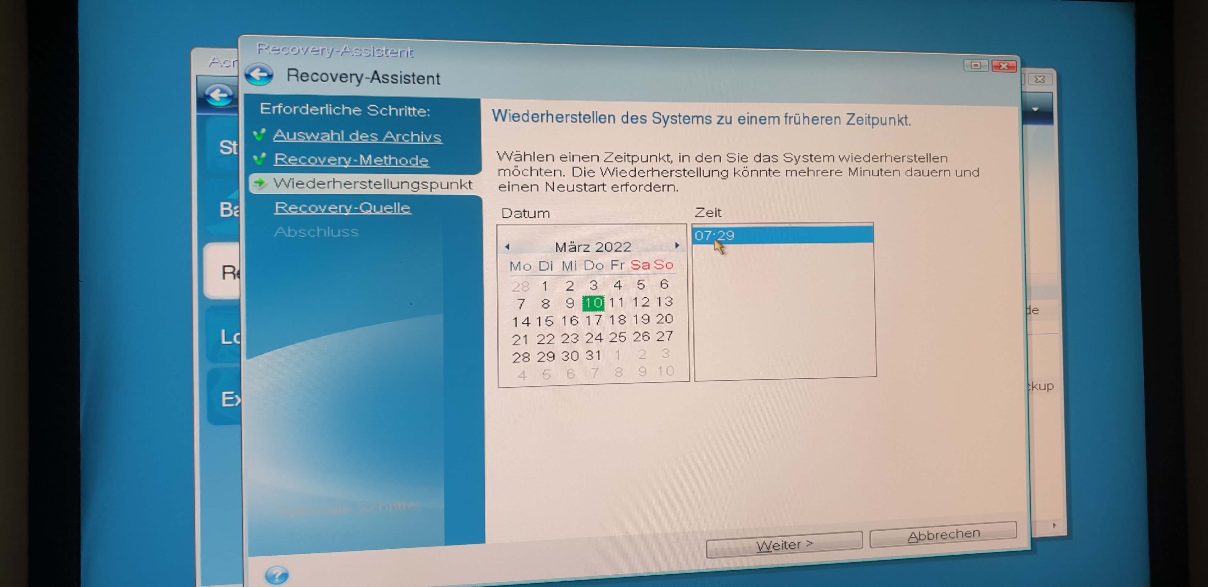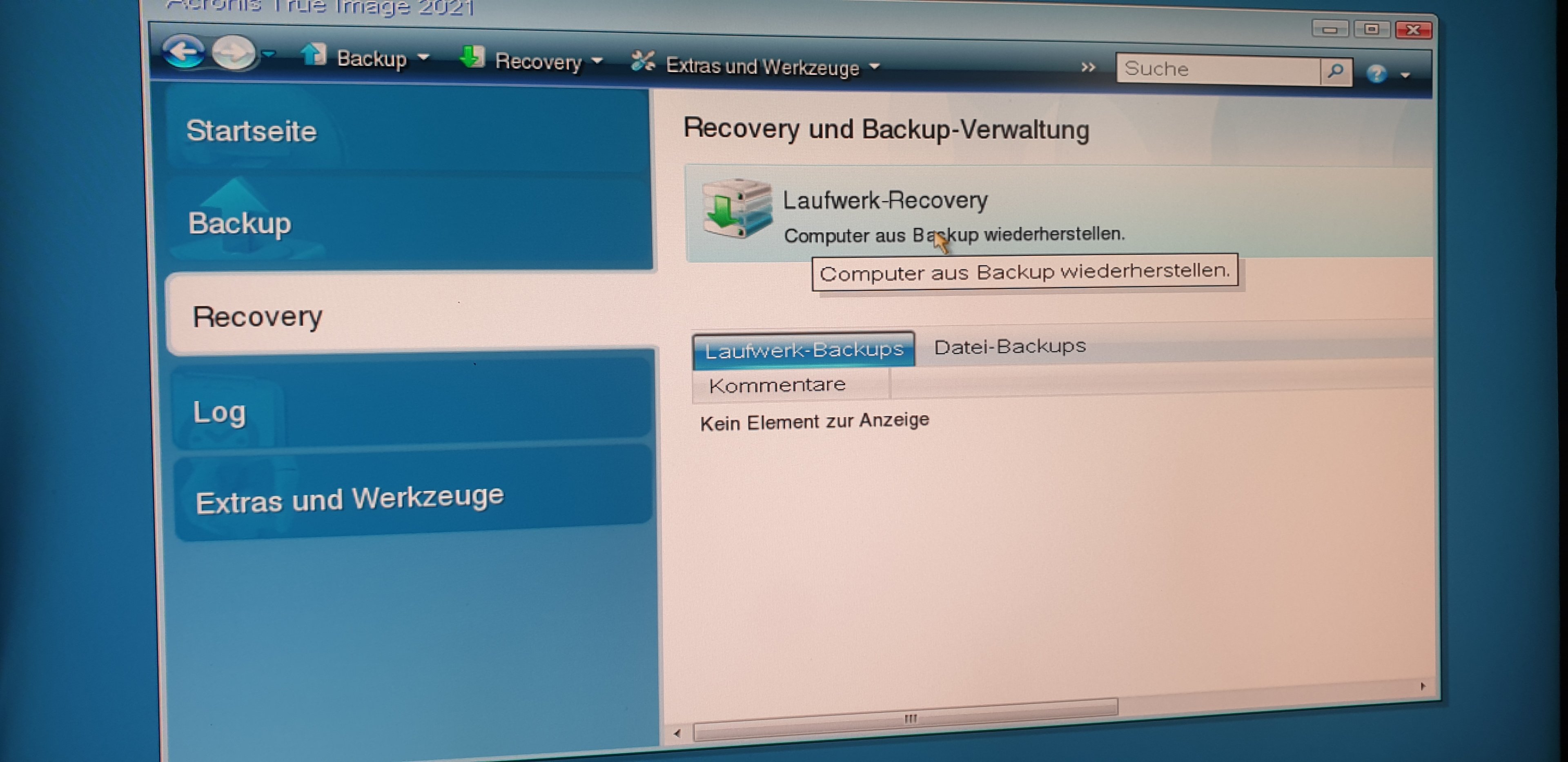a) Ich klicke auf Restore