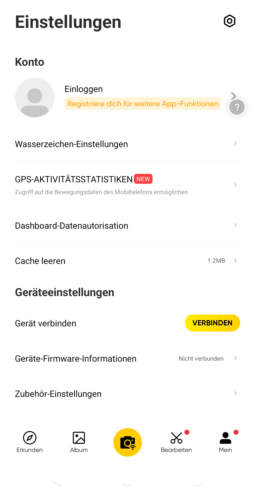 Eigentlich wollte ich jetzt einen Screenshot erstellen, um zu zeigen wo man die Erstellung überspringt, aber die Aufforderung scheint verschwunden zu sein. Nach dem Zustimmen der AGB und den Berechtigungen, lande ich direkt in der App. Dazu habe ich nur ein Screenshot aus der App ohne eingeloggten Account.