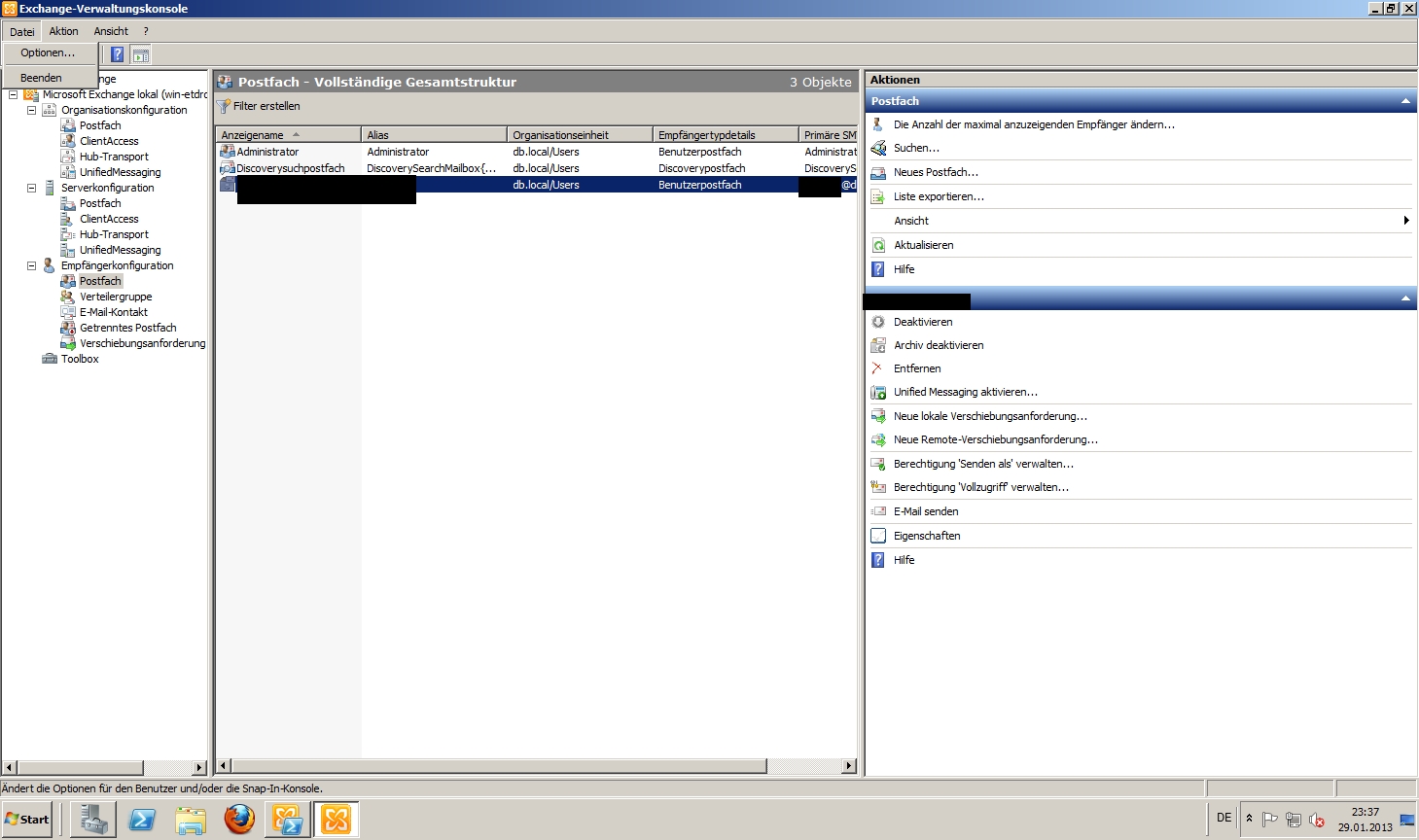 Ich habe in einer Vbox einen Windows Server 2008R2 Enterprise, darauf ist auch Exchange Server 2010 installiert.