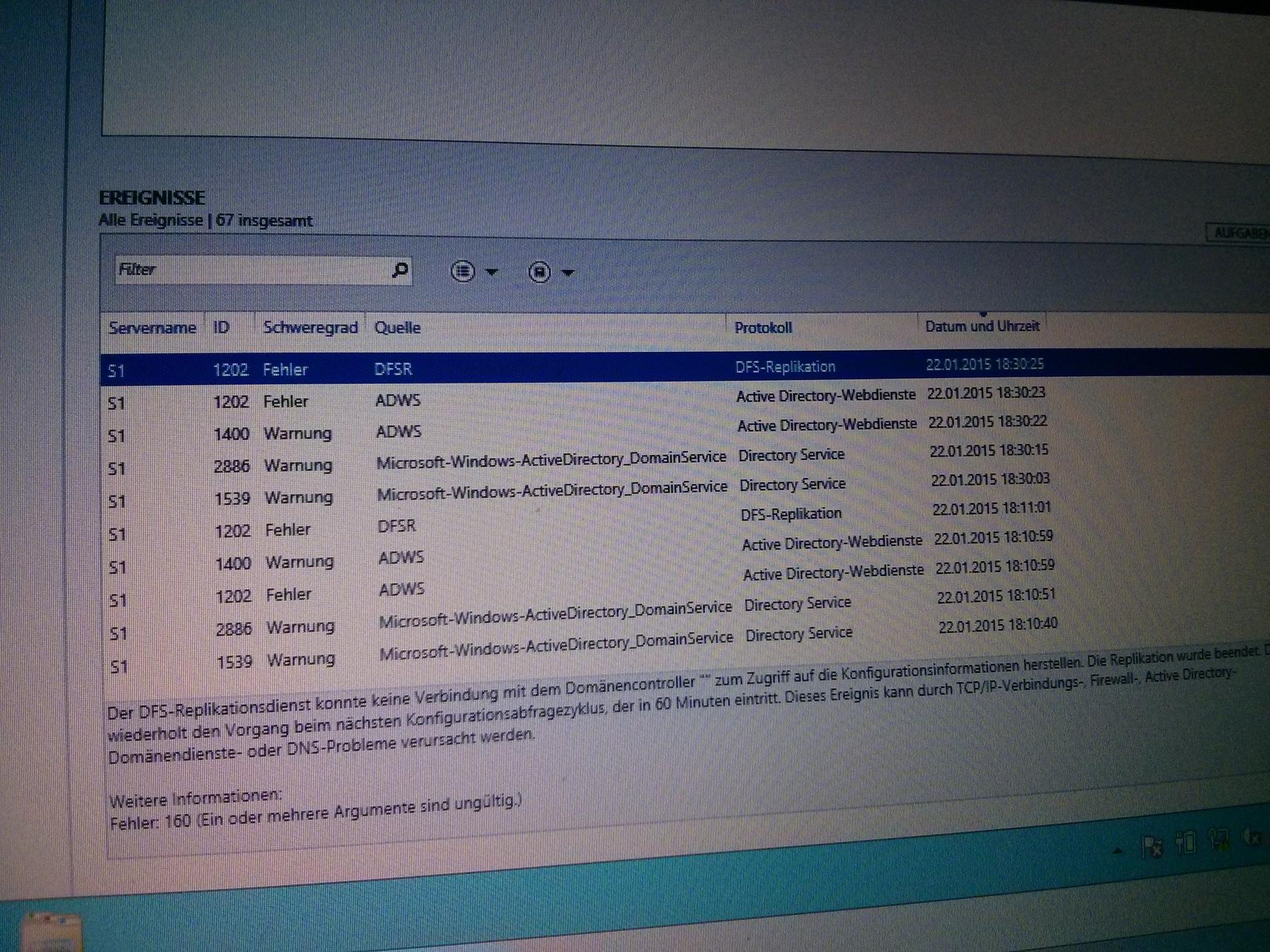 Seit ich dann den Domaincontroller heraufgestuft habe, bekomme ich immer die folgende Meldung: