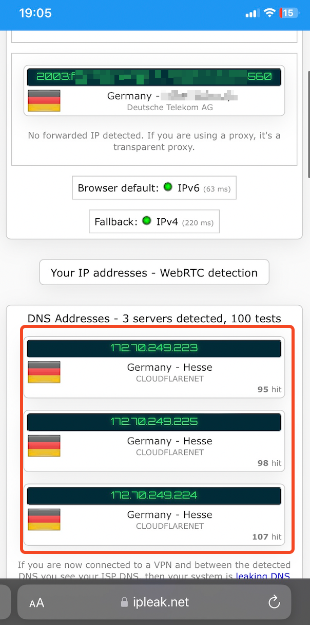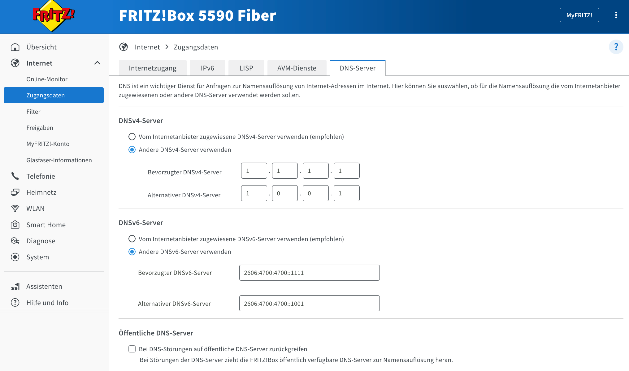 - Genutzte DNS-Server der Fritzbox selber: Cloudfare