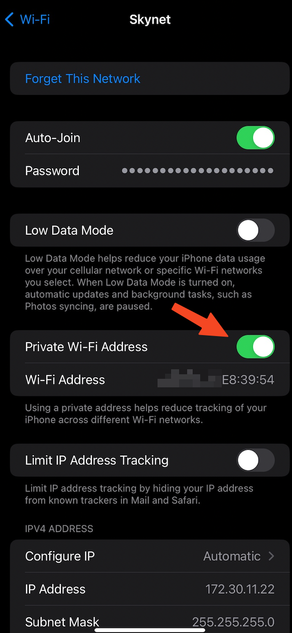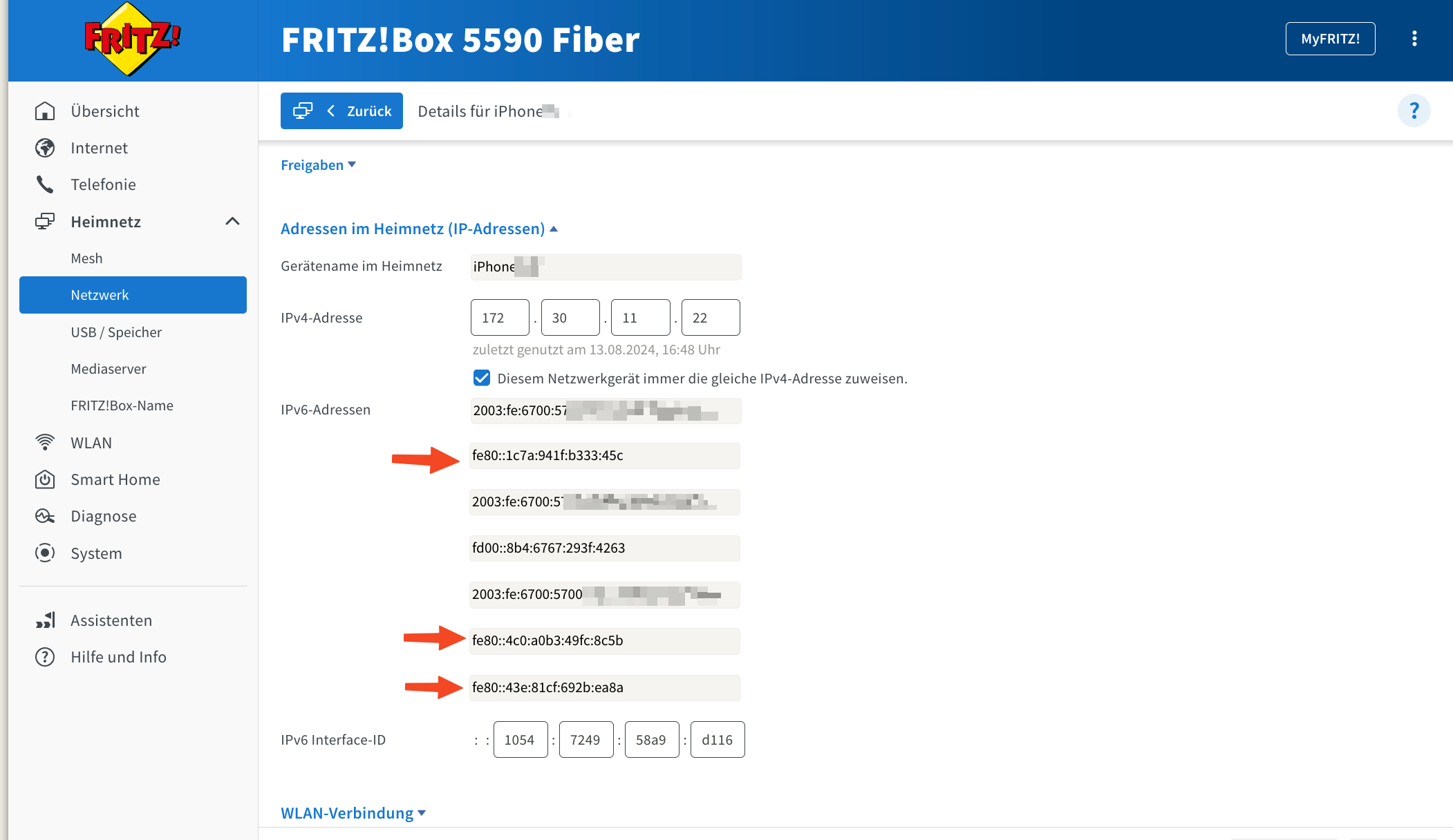 Hängt das irgendwie mit IPv6 zusammen? Kann es mit der Option "Private WiFi Address" aus iOS (siehe Screenshot von meinem iPhone) zu tun haben?