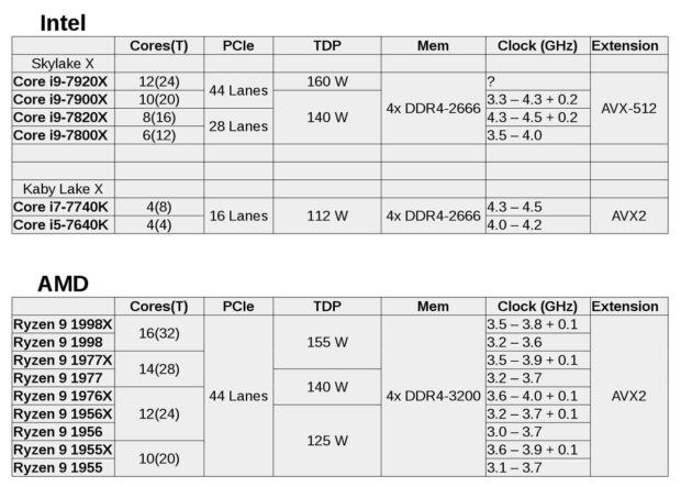 Wenn ich mir diese Tabelle so anschaue kommen die 12/14 Kerner in die engere Auswahl (4ghz wäre schön, hört sich einfach gut an
