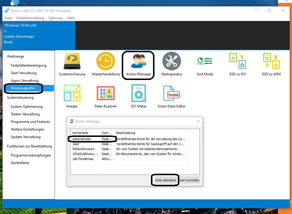 ich bin so langsam am verzweifeln, weil jede Recherche im INternet wie ich Adminrechte wiederherstellen kann, nicht funktionieren.