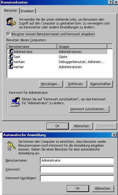 Zum Selbstschutz richtige ich immer einen Standardbenutzer(Annemarie und einen Adminbenutzer ein.