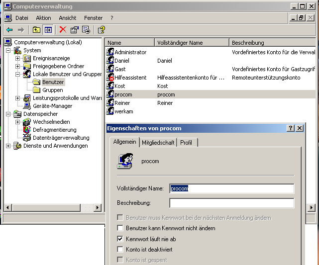 kurze Frage und zwar hat mein Kolleg sein Administrator Konto einen Namen und ein passwort nach langer Zeit verpasst! nun ist es so das der PC in Grundstellung zurück gesetzt wurde, dh alle Einstellungen in vielen Programmen sind nicht mehr vorhanden.