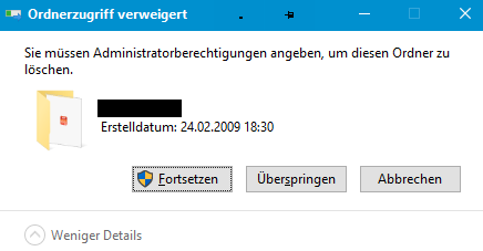 [gelöst] Administratorrechte beim löschen von Ordnern ?