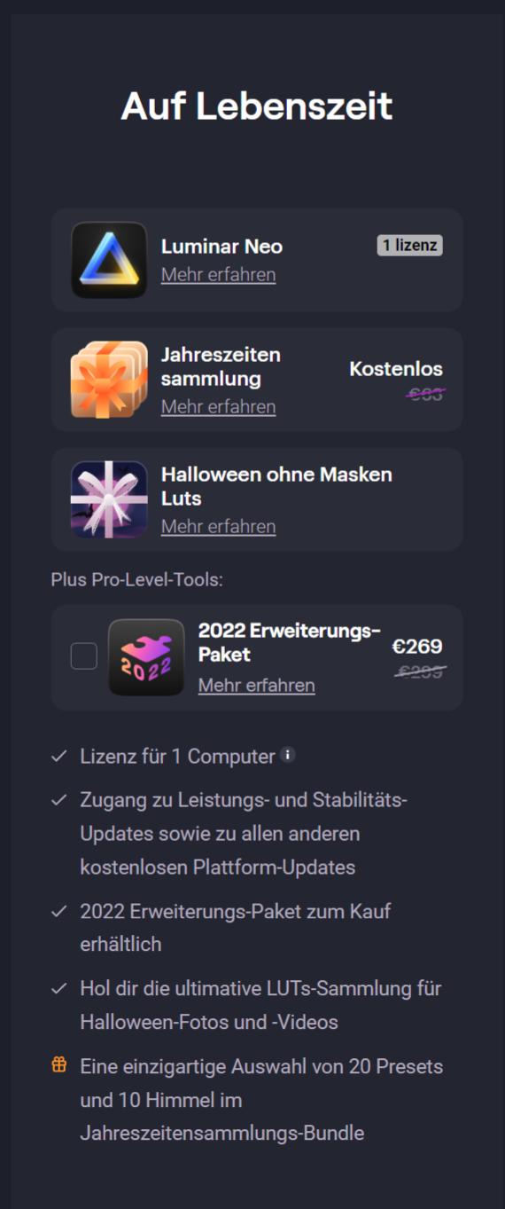 Bei der Fotobearbeitung fängt Luminar das leider seit "Neo" auch an... Ich wollte lediglich ausdrücken, dass es für mich als Privatnutzer einfach zu teuer ist. Das gilt für Foto/Video/Audio/Office etc.