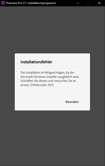 Heruntergeladen von der Original Adobe Seite. Sobald ich versuche es zu installieren bekomme ich den Fehler P87. Im Anhang noch ein Bild davon.