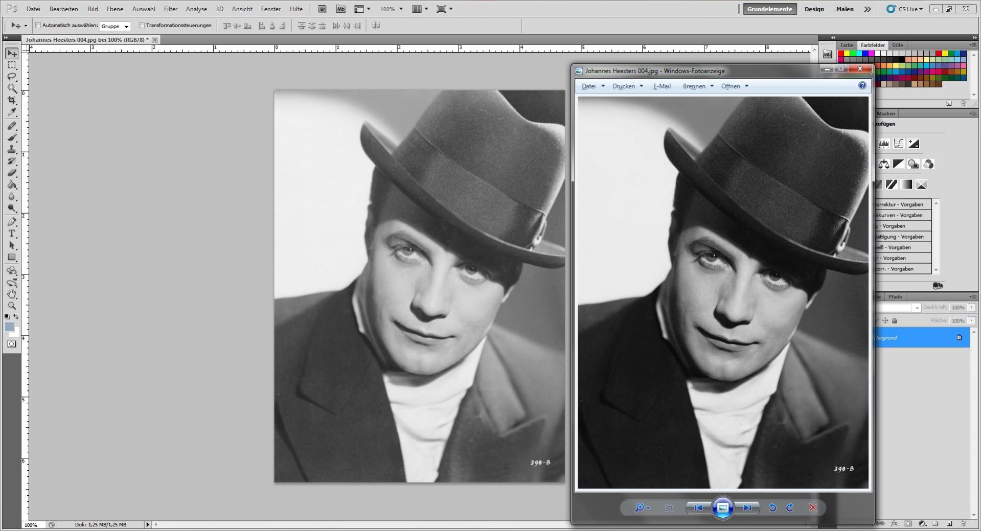 ich rätsel schon seit Wochen an folgendem, für mich völlig unerklärlichem Phänomen: Öffne ich ein ganz normales Bild (in diesem Fall .jpg), dann stellt Photoshop das Bild wesentlich heller dar als es tatsächlich ist. Vergleich siehe Anhang. Ist das normal? Gibt es irgendeine bestimmte Voreinstellung, die so ein Phänomen hervorrufen könnte? Oder woran könnte es liegen?